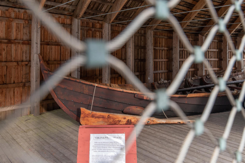9. Летом на луг на берегу у усадьбы привозят овечек, а еще тут под навесом стоит построенная в 2005 копия викингской лодки 13 века, найденной в другом конце страны, под Виролахти. На таких лодках могли и под конец существования Ванхалинны подниматься по Аурайоки, обнося пороги.
