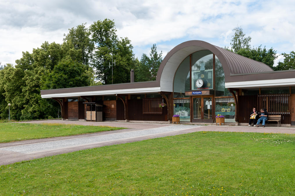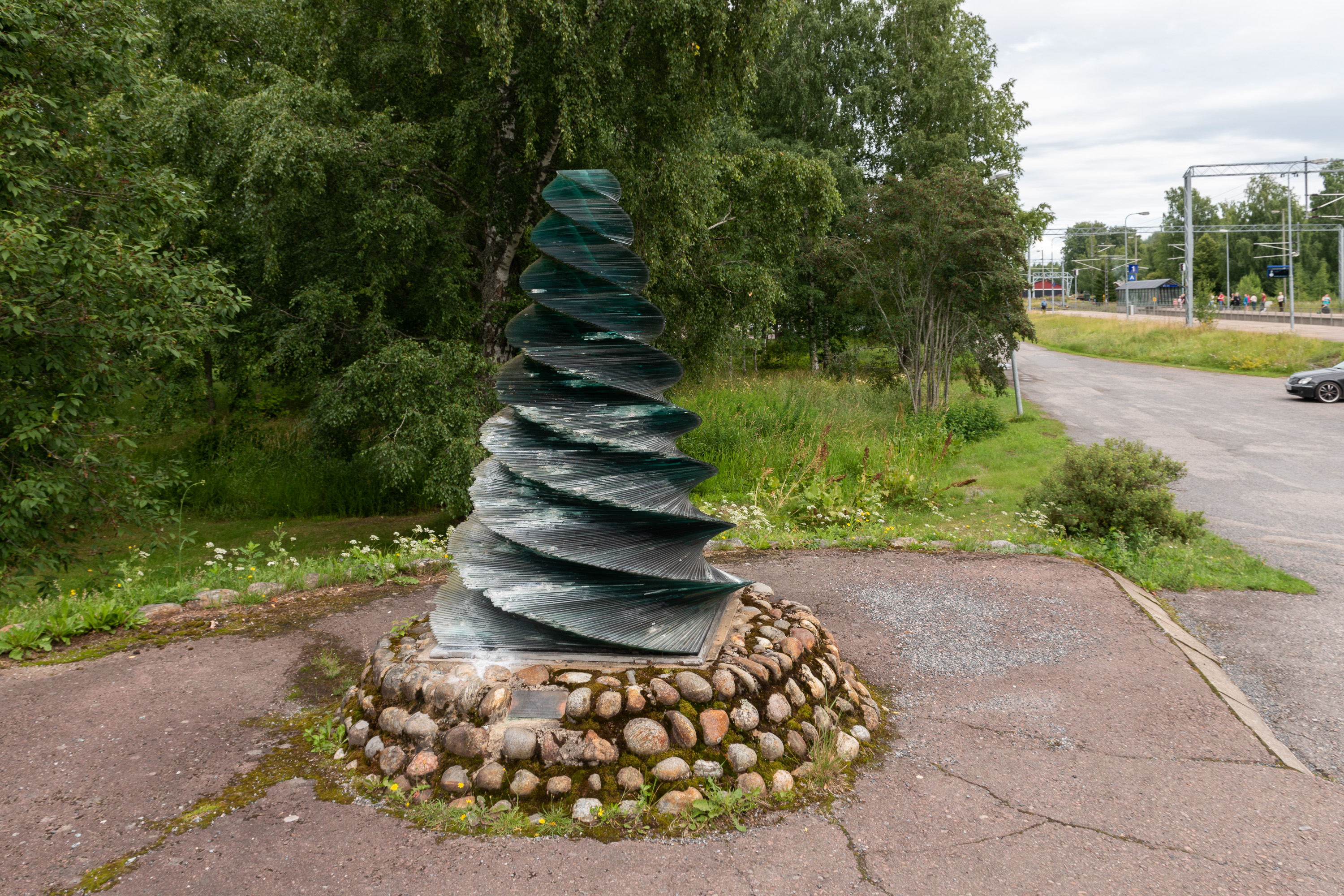 25. Ст. Хумппила и останавливающийся на ней "Пендолино" Тампере-Турку. Станция необычна вокзалом 1983 года нетиповой архитектуры, в те годы вокзалы редко строили, а интересные — и того реже. Памятник у вокзала посвящен местному стекольному заводику, закрывшемуся в 2016.
