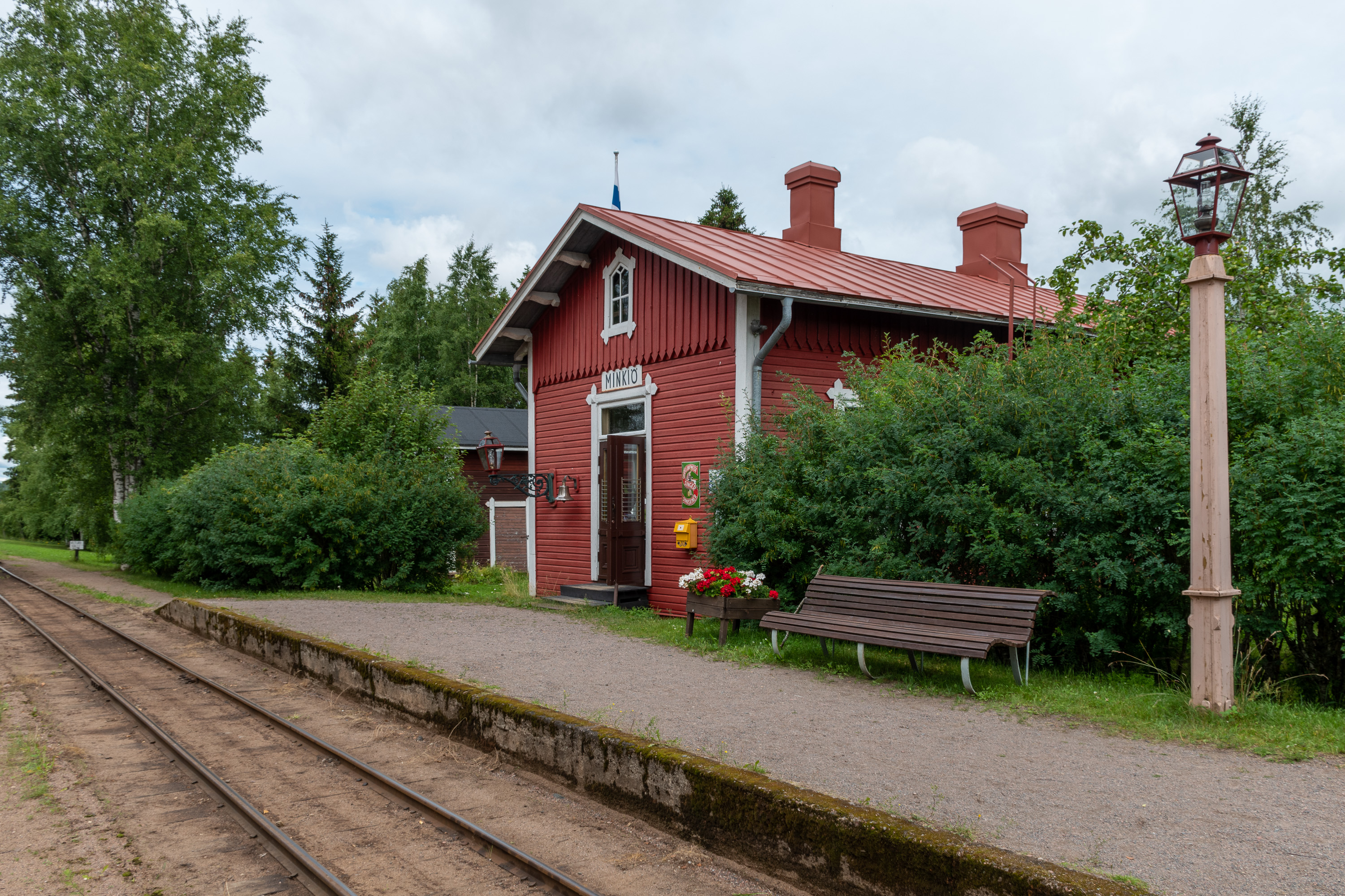 История узкоколейки обычна: в 1898 местные фабриканты, а именно хозяева Йокиойненского поместья, построили частную ветку колеи 750 мм от ст. Хумппила (Humppila) государственной ж/д сети к своим предприятиям, в данном случае — через Йокиойнен (Jokioinen) до города Форсса с его текстильной промышленностью, длиной 22 км. Таких веток в свое время было немало. Сейчас они либо разобраны, либо давно выкуплены государством и перешиты на нормальную колею (например, ветка Лахти-Ловииса такая). Йокиойненская ж/д действовала до 1974, пассажирское движение было до 1954. Однако полностью разобрать ее не успели, участок Минкиё-Йокиойнен посередине остался. С 1978 года железную дорогу выкупила некоммерческая ассоциация, и пустили музейные поезда. Участок Хумппила-Минкиё восстановили в 1994, Йокиойнен-Форсса уже нет, его трасса застроена.