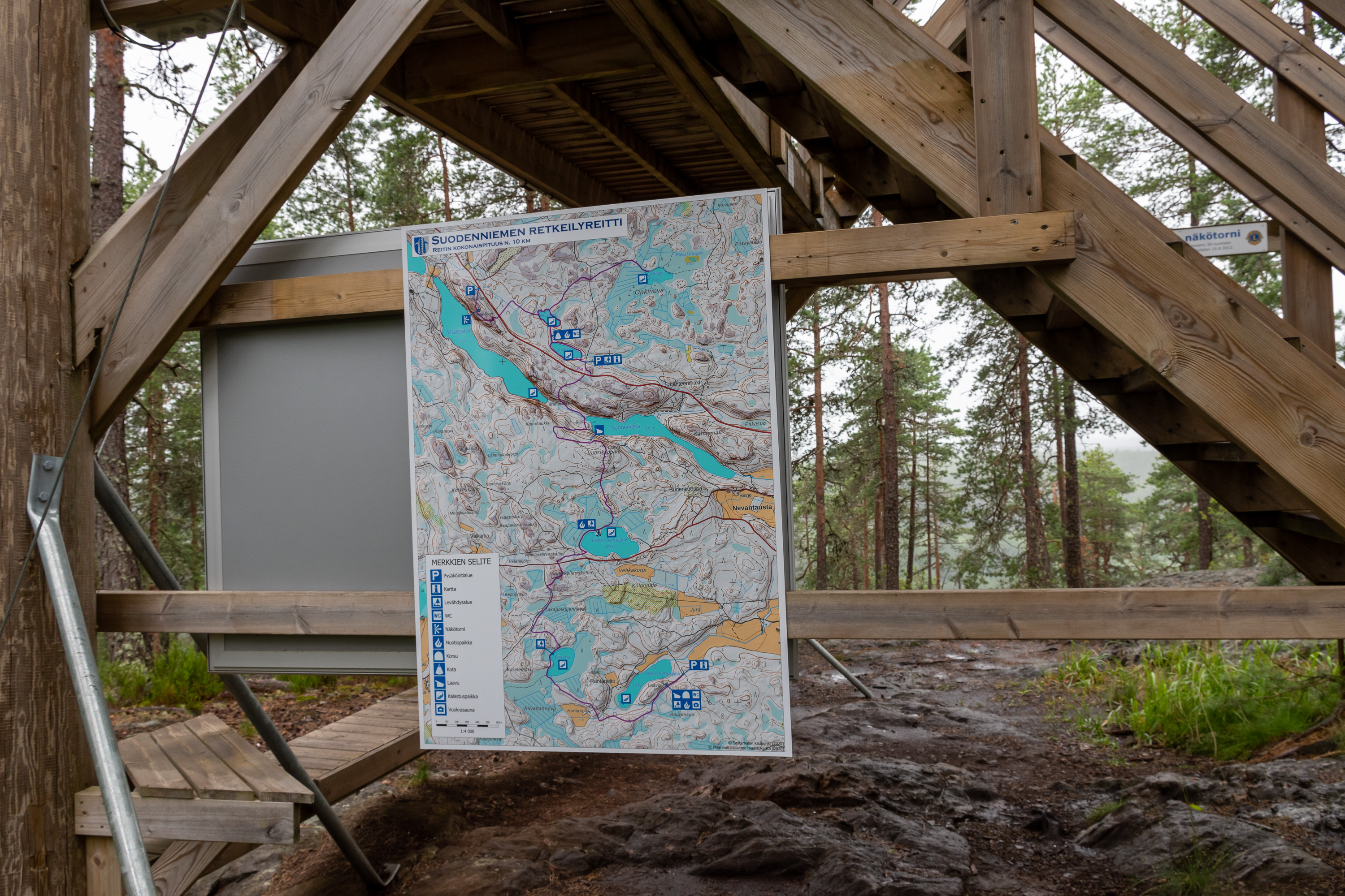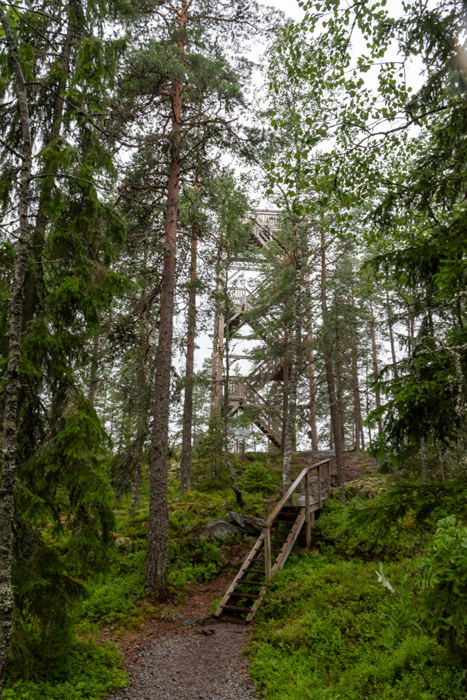 Хотя увидеть сложно было, дело было под проливным дождем :) Озера видны со смотровой вышки на горе Пируланвуори (Pirulanviori, фин. Чертовская гора) у озера Палоярви (Palojärvi). Здесь, посередине между Тампере и Пори (примерно по 50 км от каждого), есть цепочка озер в длинной долине между крутых холмов.