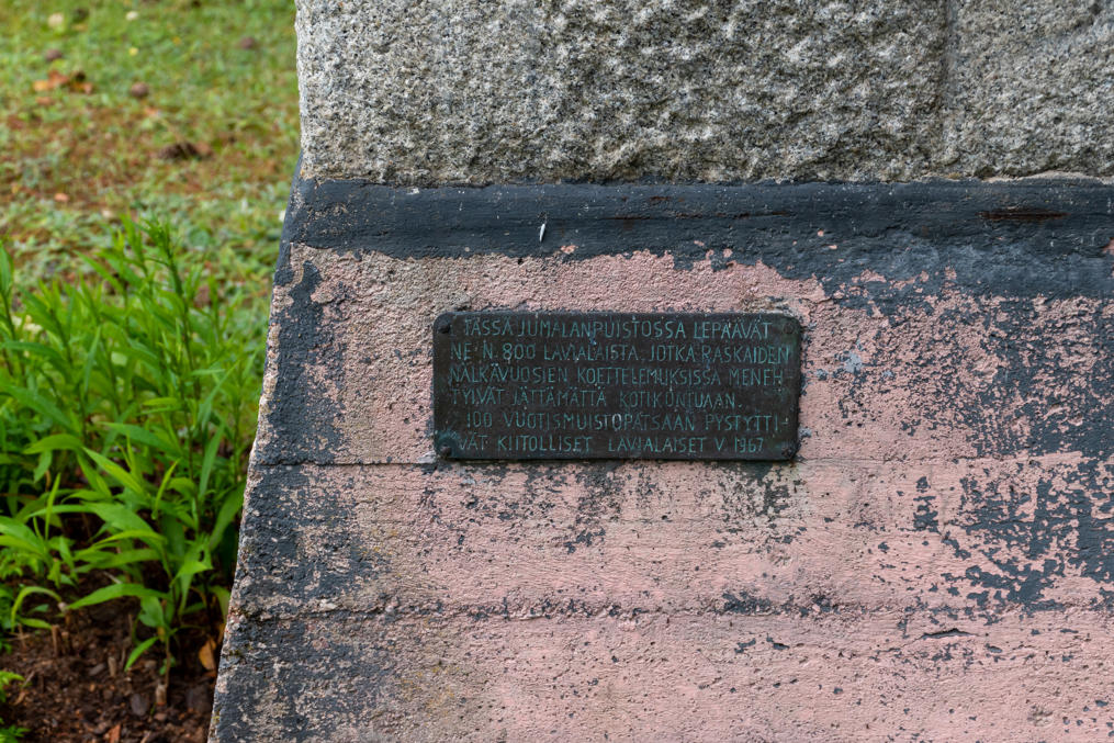 Муниципалитет Лавия присоединили к городу Пори в 2015, хотя до Пори тут еще ехать и ехать. В селе запомнился только памятник Великим Голодным годам 1866-1868 (Suuret nälkävuodet). Эти памятники нередки, тут еще отдельно упоминают, что умерло около 800 лавийцев, что для сельской волости очень много.