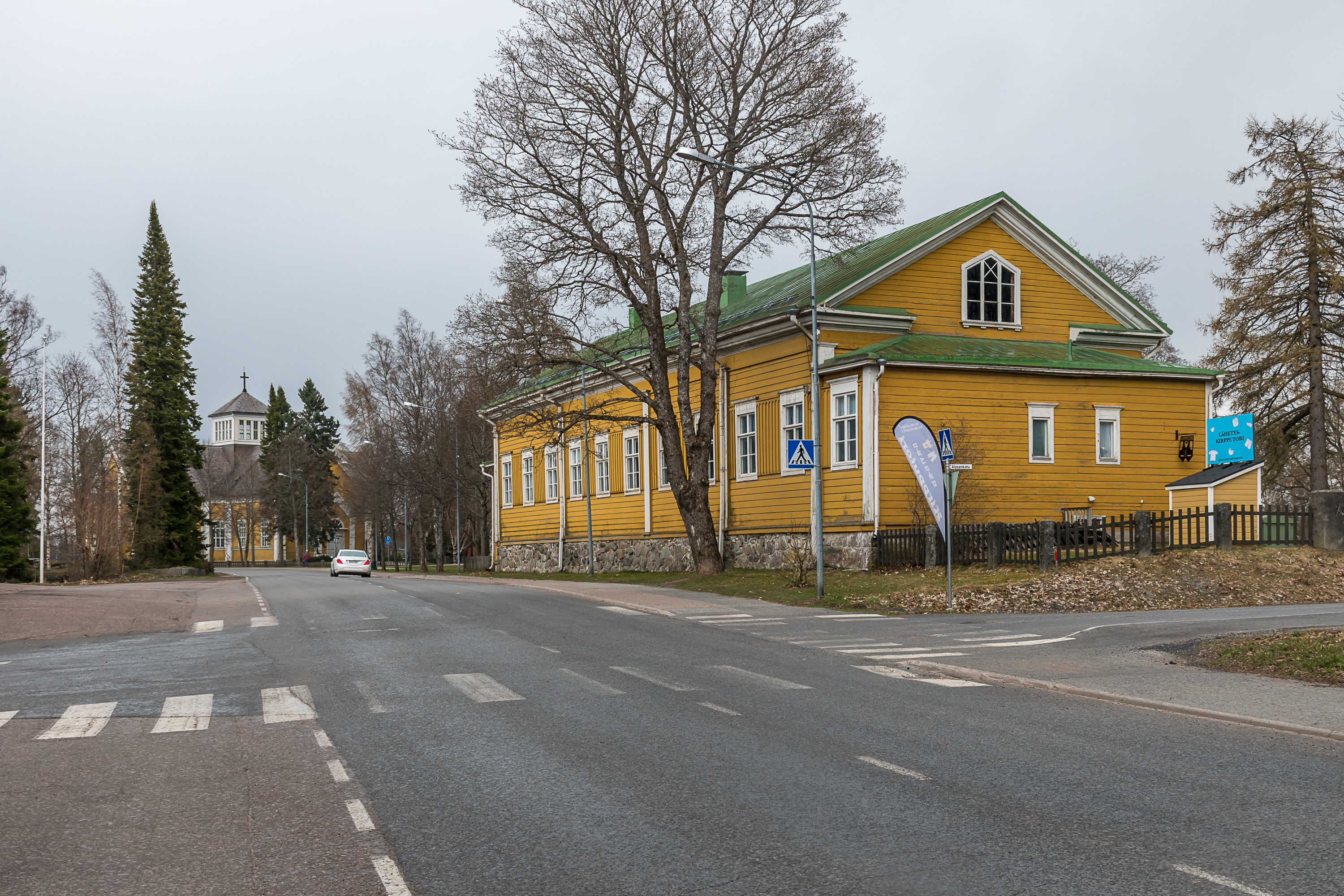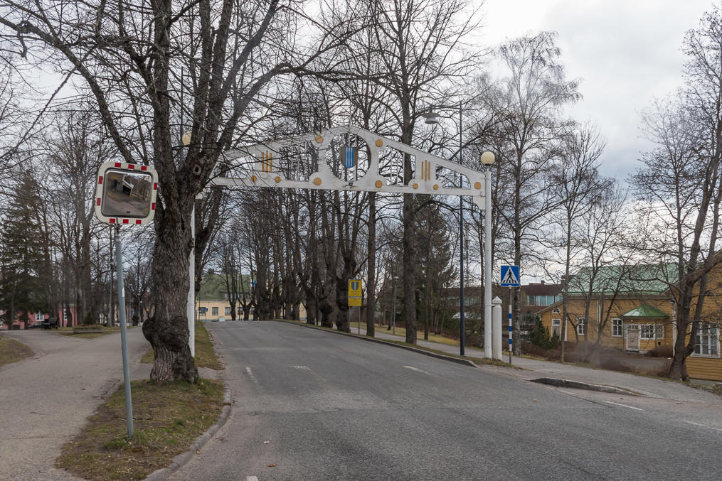 4. Тем не менее, старый деревянный Икаалинен, хоть и маленький, неплохо сохранился и по нему вполне приятно прогуляться. Он занимает западную часть полуострова, на котором расположен городок, и начинается с таких ворот и церкви 1801 года (существовавшей, таким образом, с тех пор, когда Икаалинен еще был обычным селом). Выше мы уже посмотрели многие домики.