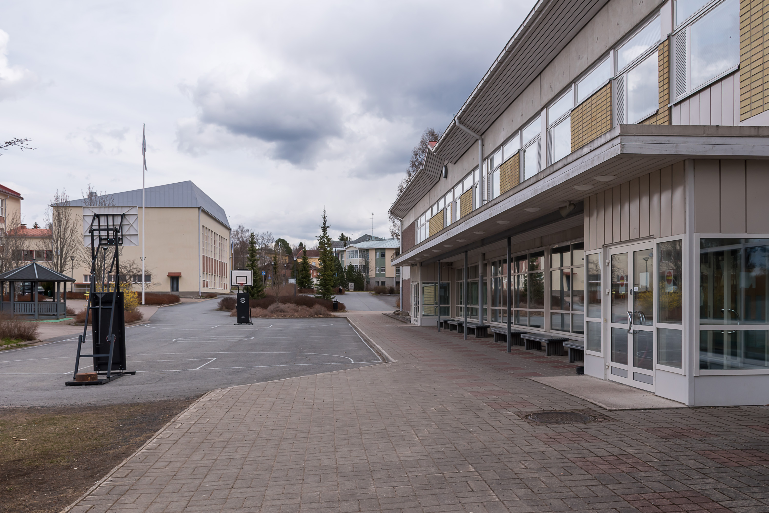 8. Три школы: бывшая старая нарядная деревянная, обычная 20 века, и новая, в другой части городка, 2017 года, построенная из дерева, и почему-то называющаяся школой Белой Розы.