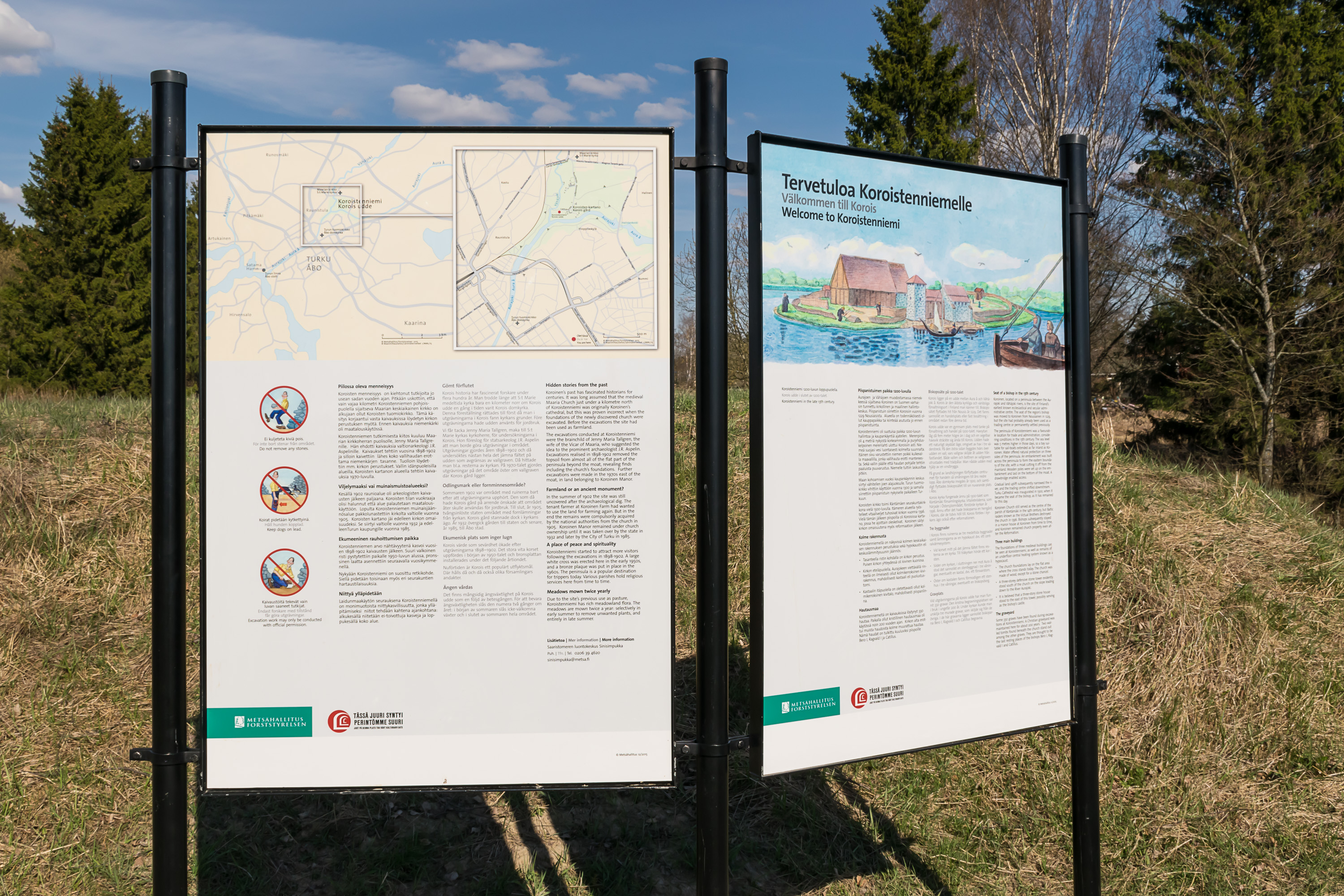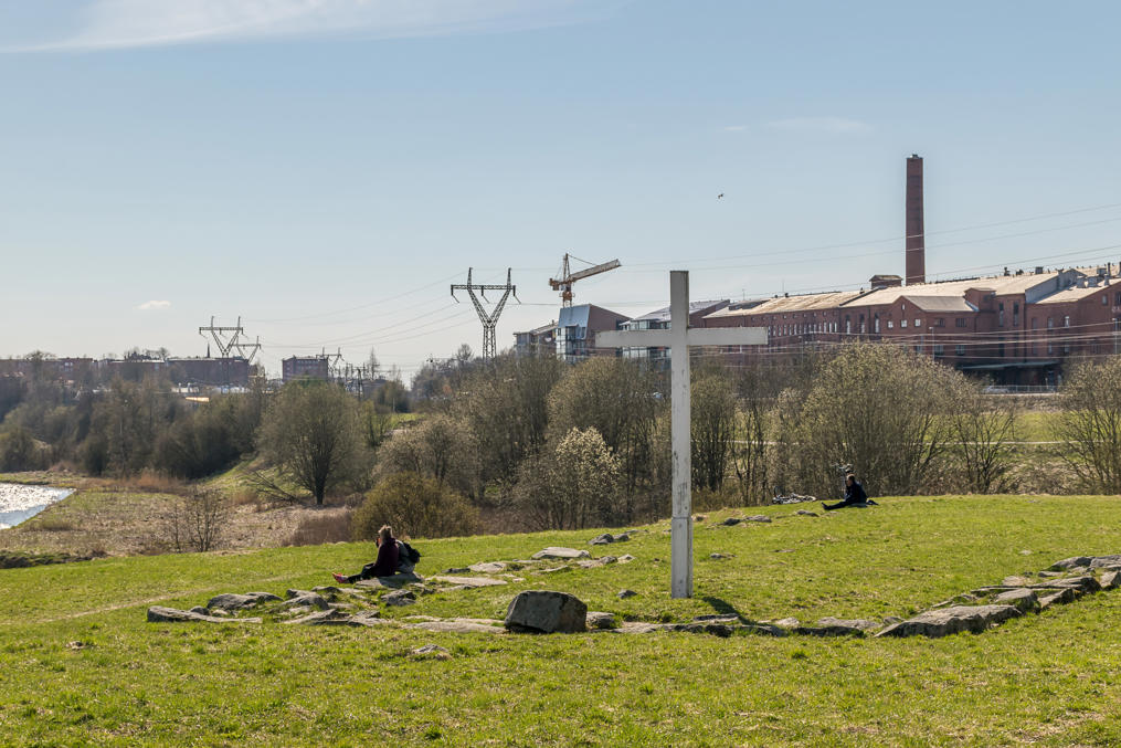 11. Старая Коройненская церковь же была разрушена в ходе набега на Турку пиратов-Виталийских братьев в 1396 году. С тех пор на ее месте были поля, да и в наши дни остались, хоть пригородная застройка Турку за ними продолжается дальше. Дальше идет и дорожка вдоль Аурайоки.