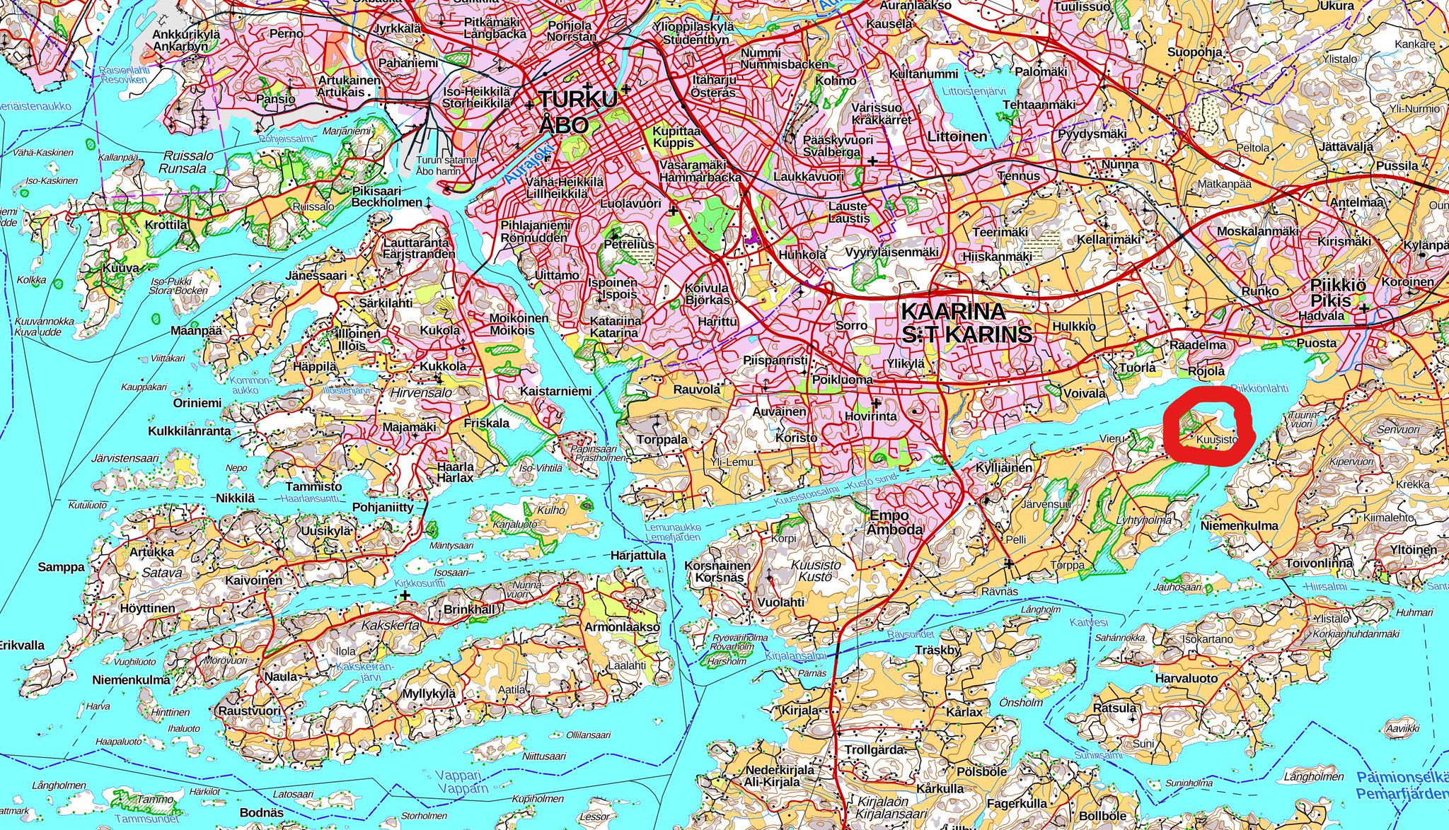 13. Ныне Куусисто административно относится к Каарине (Kaarina), восточному пригородеу Турку, менее чем в 10 км от ее центра. На остров ведет мост; с него как раз начинается Архипелаговая дорога вокруг архипелага Турку. Руины находятся в дальнем углу острова, напротив поселка Пииккиё на большой земле.