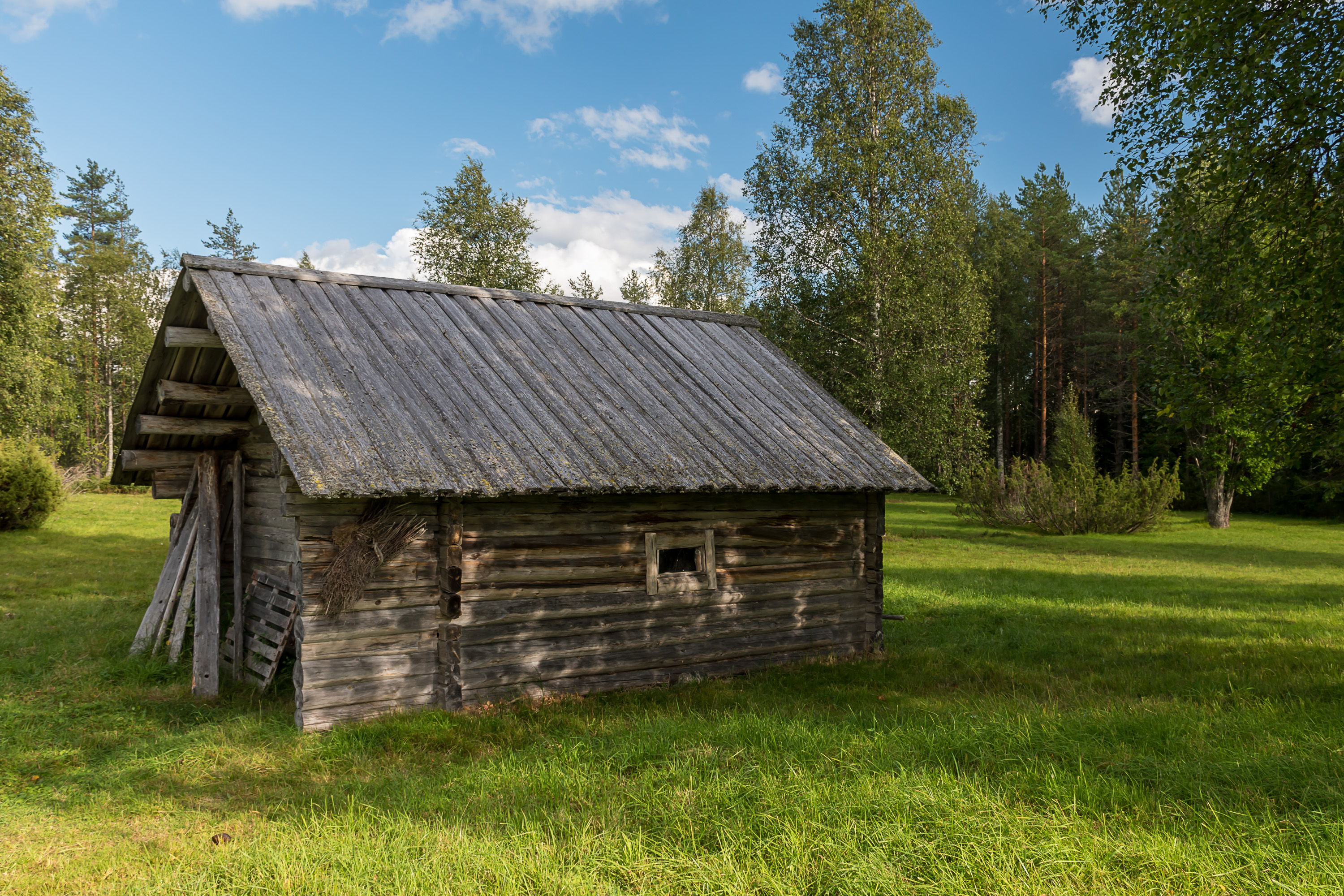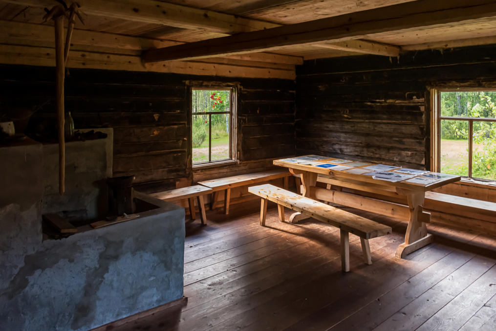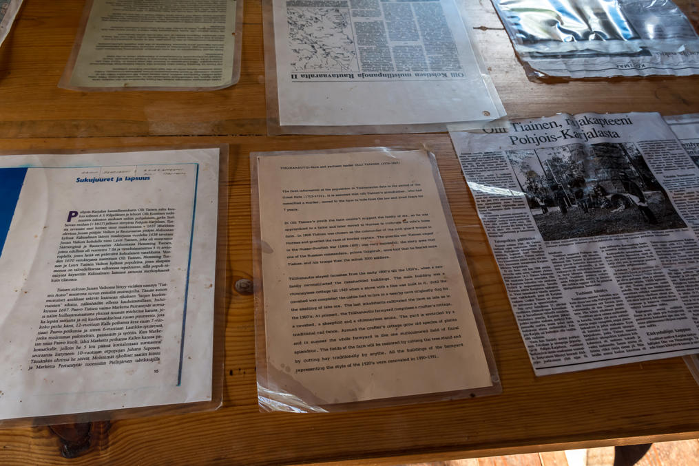 9. А это музейное хозяйство — торп Тийликанаутио (Tiilikanautio), "Тийликкская пустошь". Согласно бумажке на столе внутри, здесь жил со времен Великой Северной войны род Тиайненов, когда некто Антти Тиайнен (Antti Tiainen), совершив убийство, бежал сюда, построил дом и жил семь лет, прежде чем показаться людям.