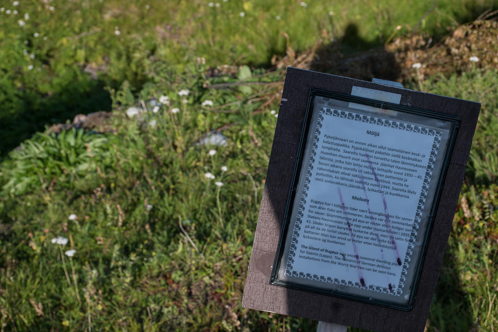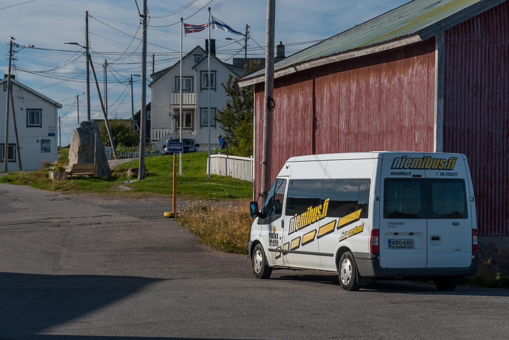 Бугёйнес по-квенски зовется Пюкейя (Pykeijä). Вообще у многих мест в Финнмарке есть финские/квенские названия. Я бы, правда, не сказал, что в облике села есть что-либо финское. Но есть таблички с финским языком (а на фото с квенским) и внезапно попался микроавтобус-такси из самой Ваасы.