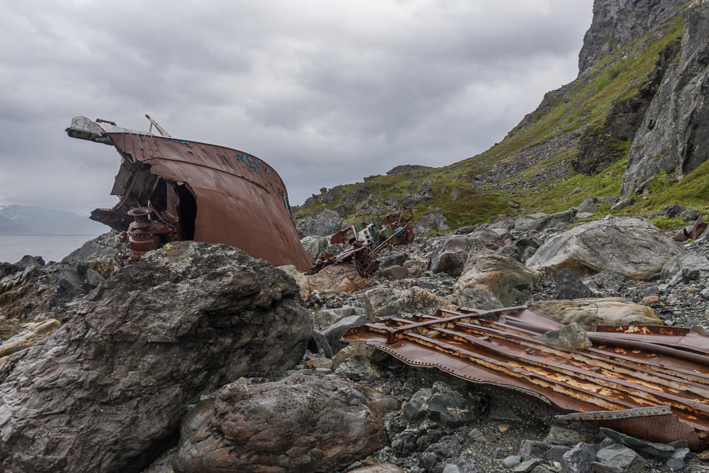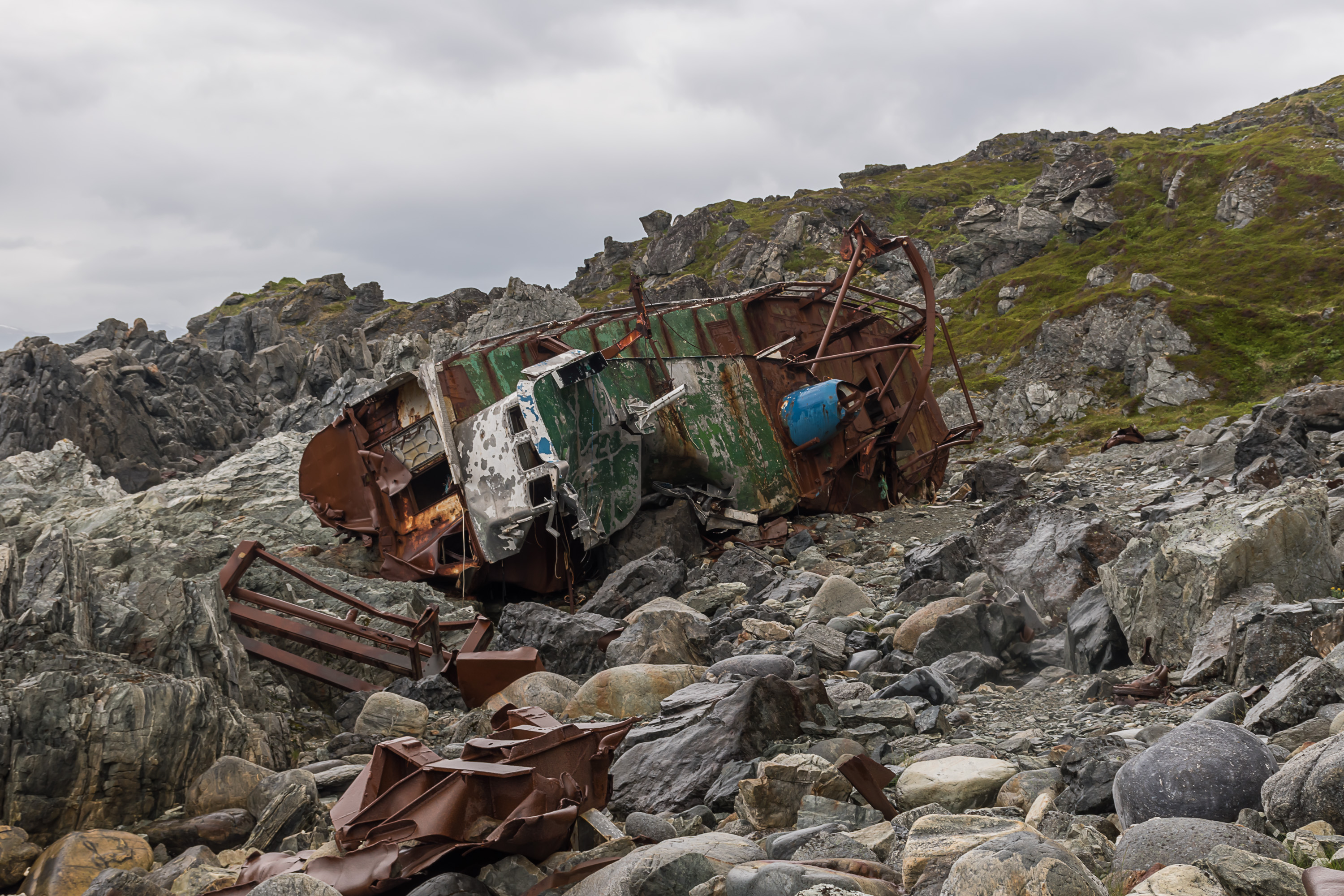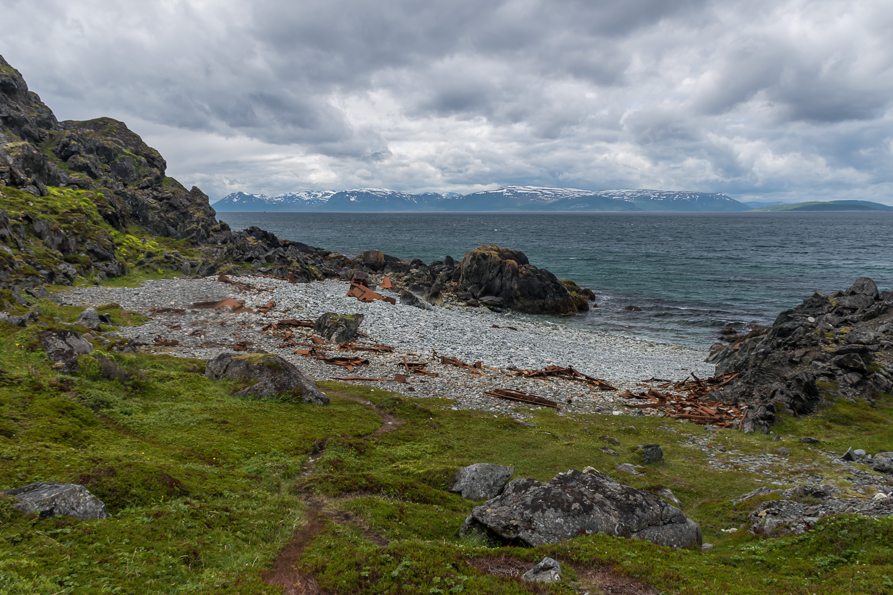 Мыс Люнгстува (Lyngstuva), которым кончается полуостров Люнген (Lyngen) в Северной Норвегии, в июне 2019 встретил нас маленьким кладбищем разбившихся кораблей.