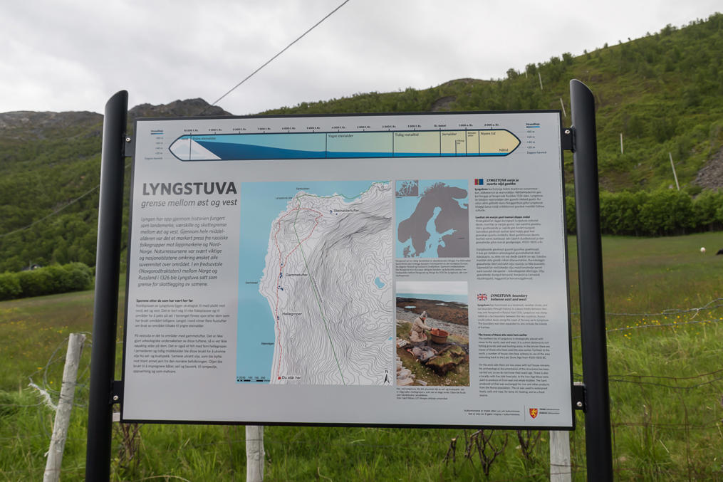Таблички рассказывают, что когда-то в 14 веке здесь была граница между Норвегией и Новгородом, или по крайней мере граница мест, где саамов облагали данью норвежцы и новгородцы.