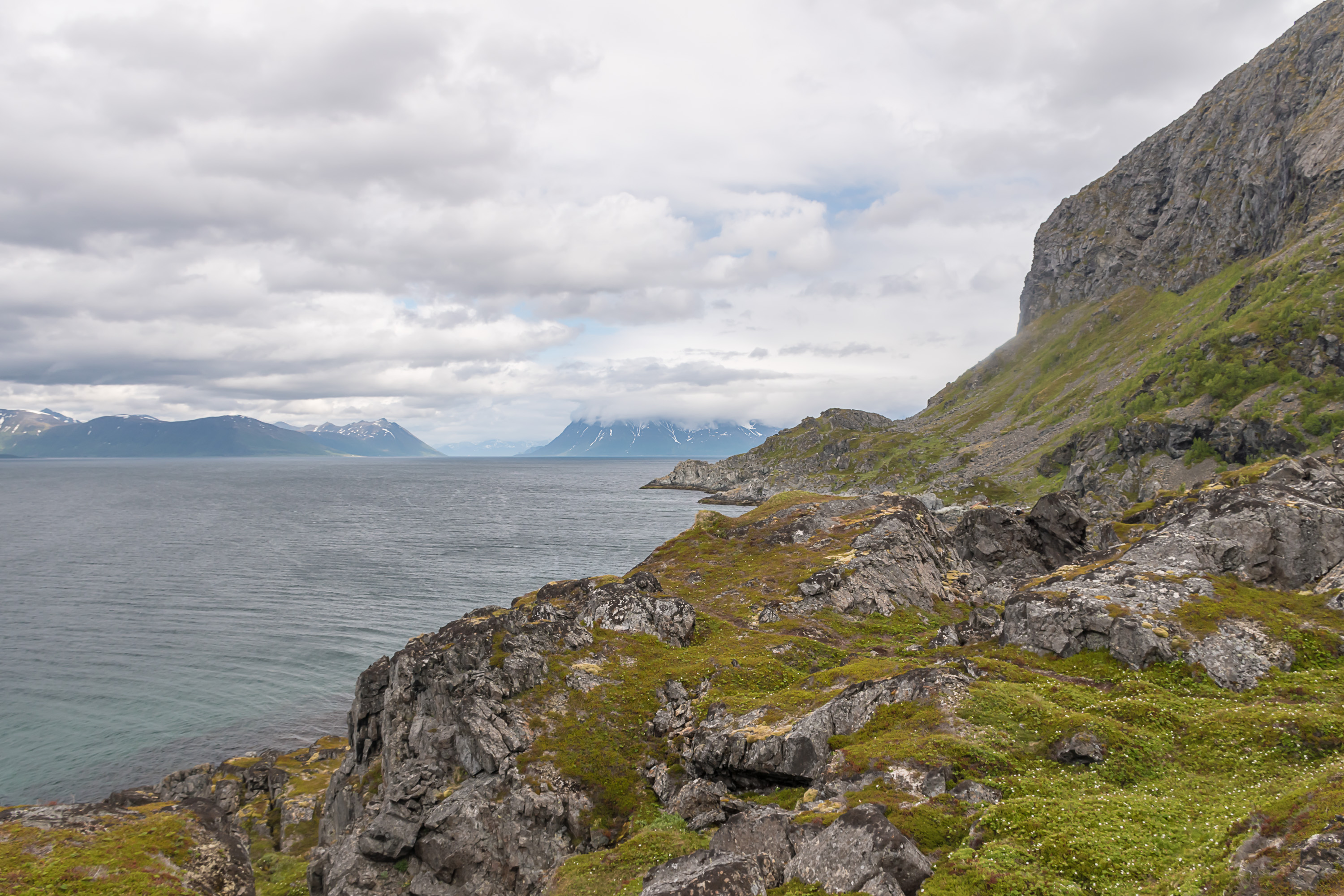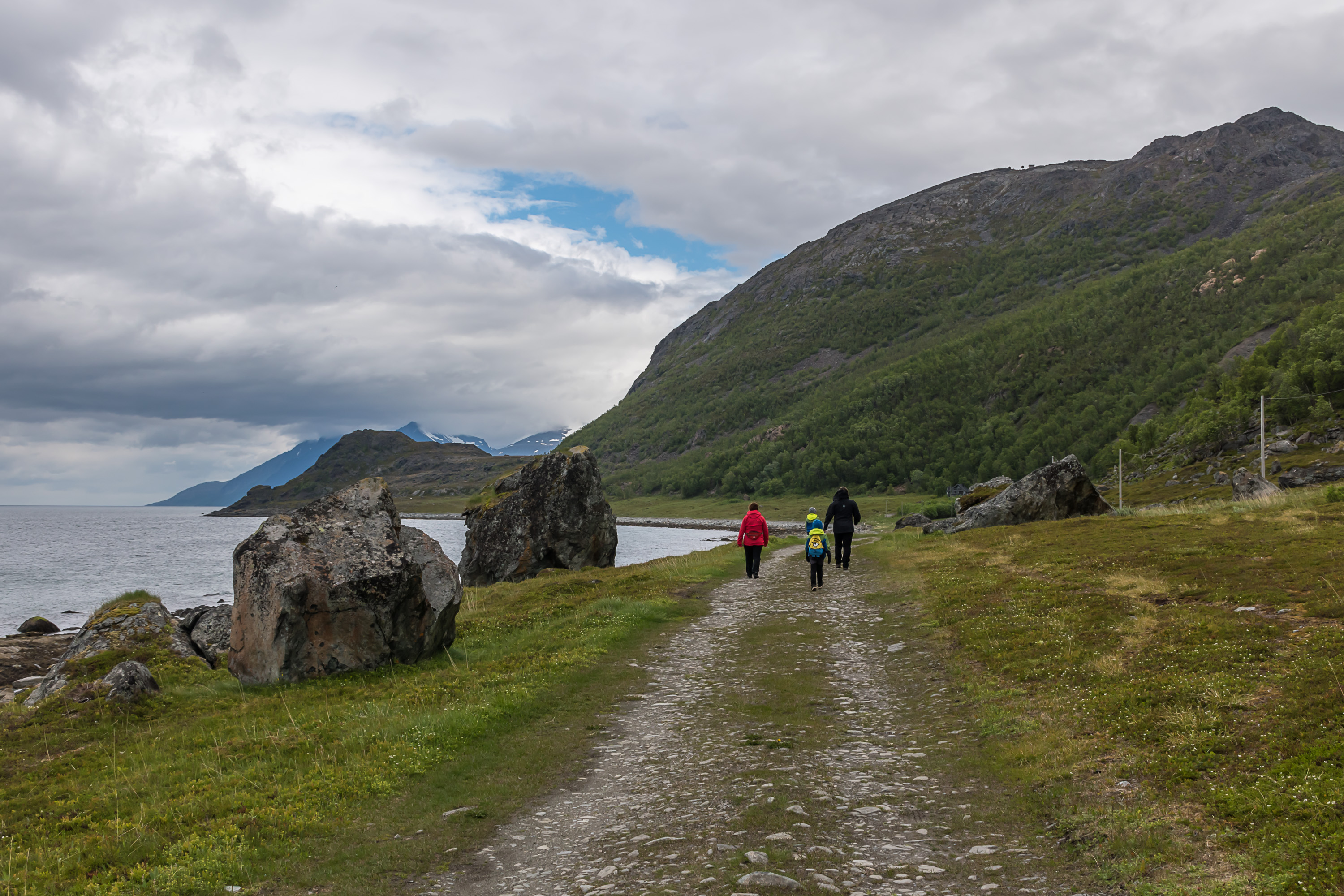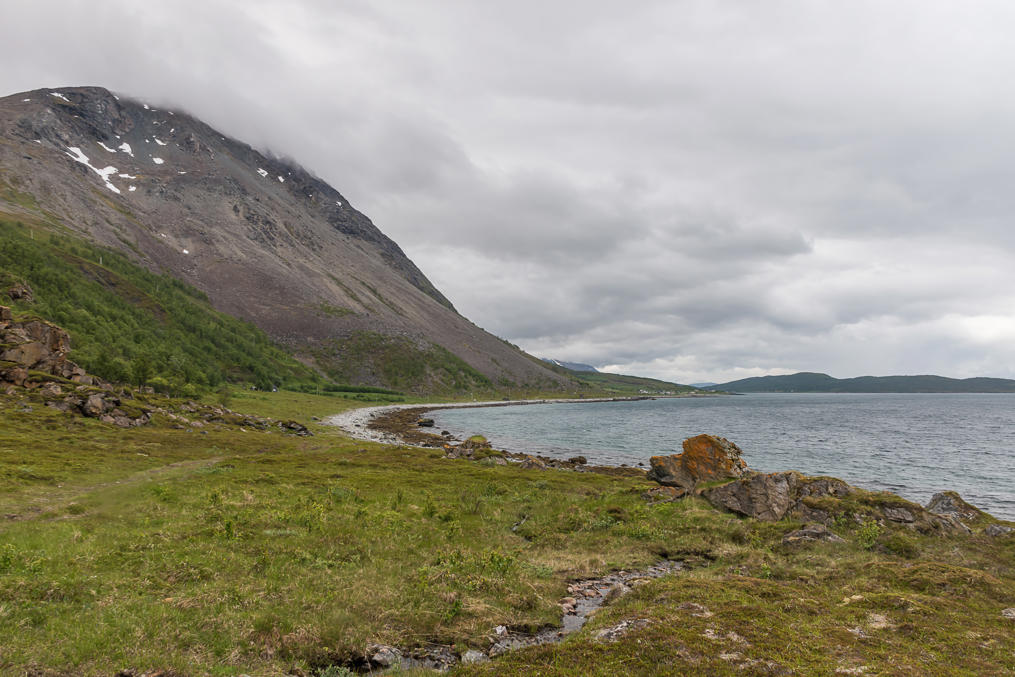 Люнген — одно из моих любимых мест в Норвегии, в частности, там находятся мои любимые норвежские горы — Люнгенские Альпы (Люнгсальпан, Lyngsalpan), высотой до 1834 м (гора Йиехкеварри). Я показывал горы поближе и главный поселок в этих местах, Люнгсэйдет, здесь. Но тропа по северо-восточному берегу до Люнгстувы по меркам Люнгена и Норвегии очень простая, тут ни в какие горы лезть не надо.