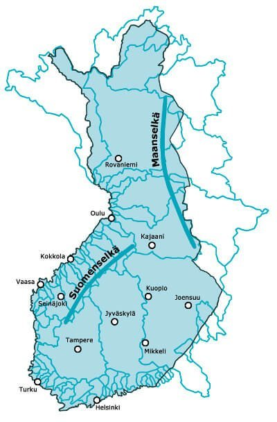 На подобных водоразделах в Финляндии селились мало, для сельского хозяйства они малопригодны. Например, близ Хельсинки такой территорией был нынешний национальный парк Нууксио (Nuuksio), а дальше на север — Таммельские возвышенности (Tammelan ylänkö, треугольник Рийхимяки-Хямеэнлинна-Форсса).