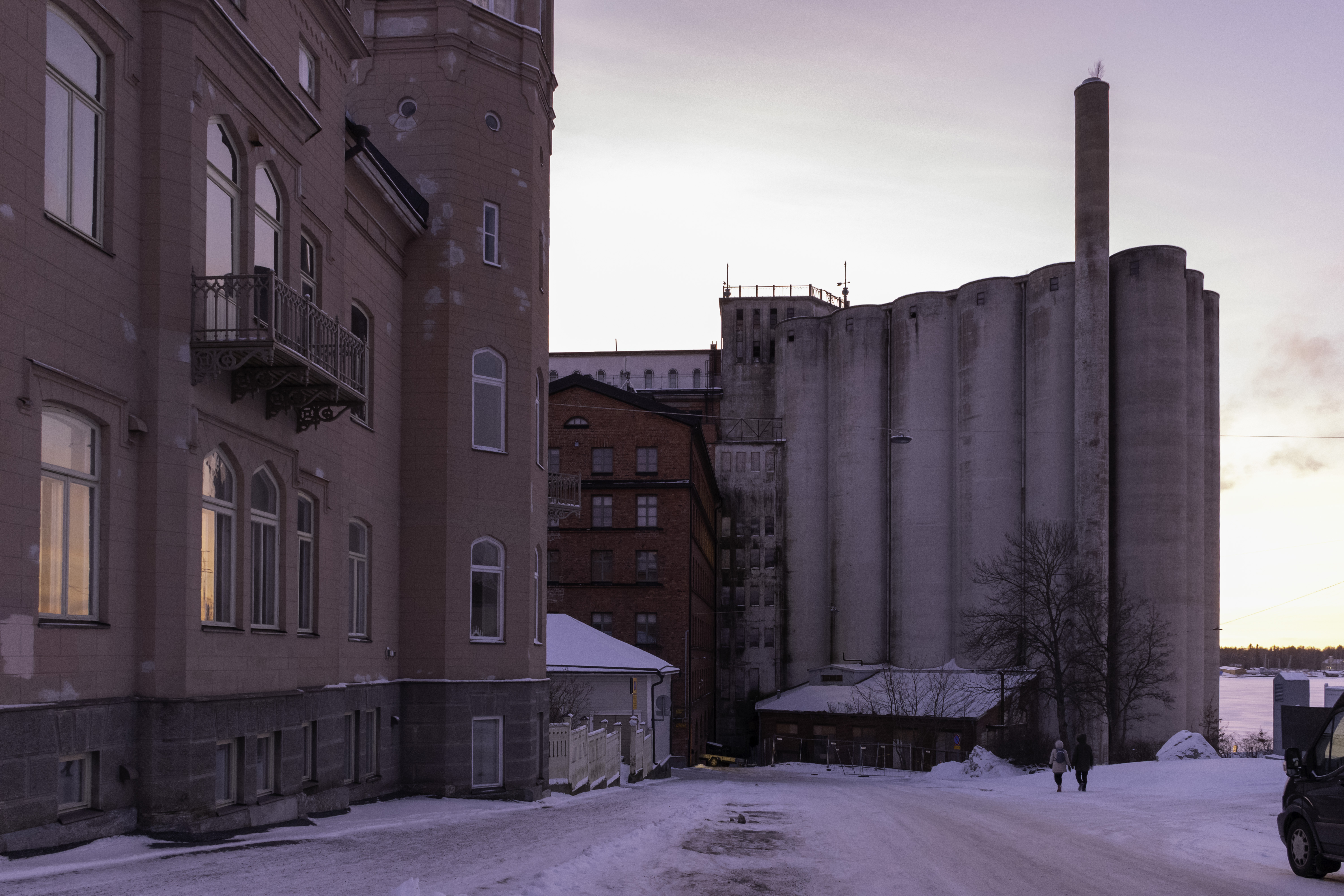 В бывшей мельнице филиал университета Åbo Akademi (шведоязычного), а элеватор много лет как снесли — после этих фото, летом 2023, снесли наконец. Отсюда пошел хлеб Vaasan. Почти недействующая ж/д ведет в порт. На другом берегу, в Палосаари, бывший х/б комбинат, ныне там Ваасанский университет (финскоязычный).
