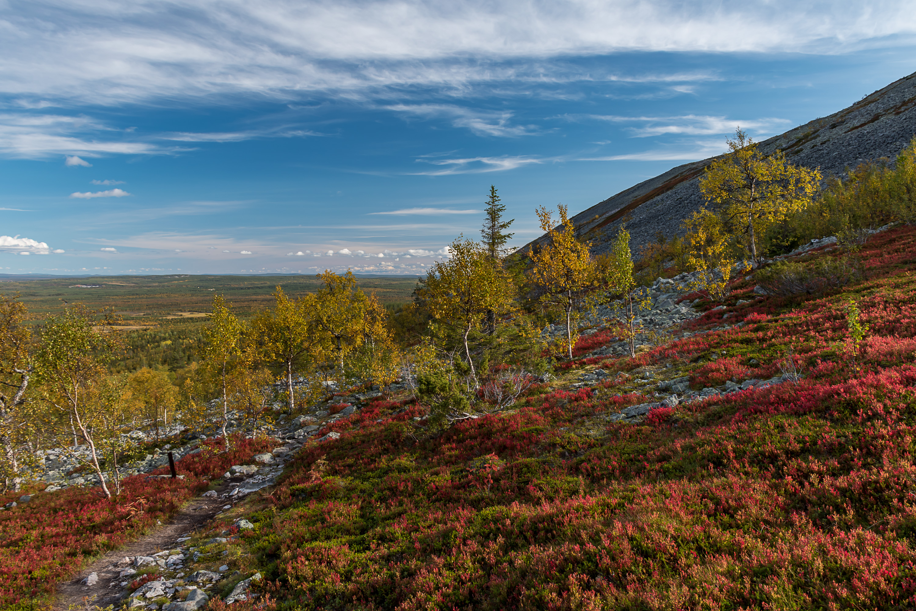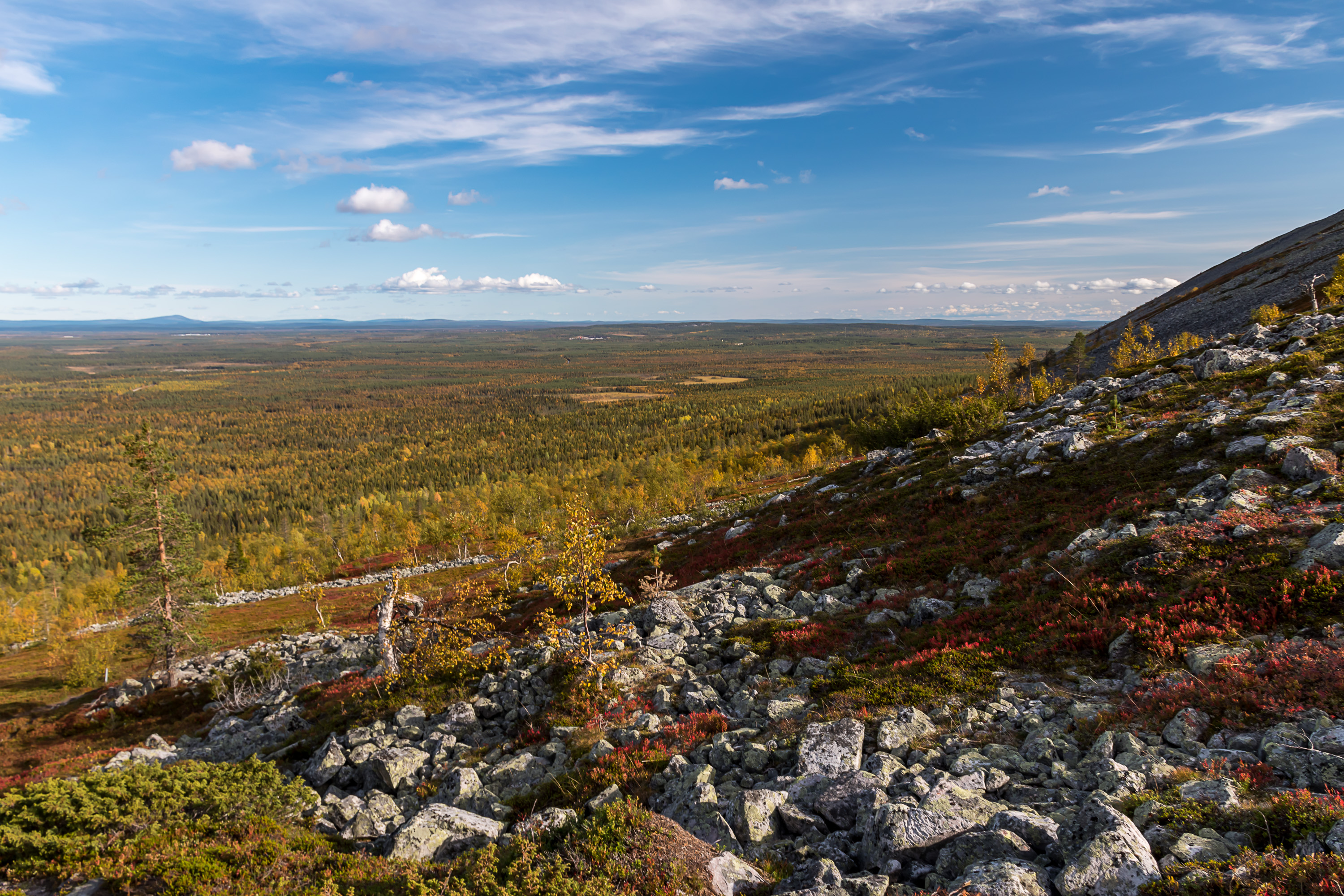 Как известно, краски осени — ruska — в Лапландии, на склонах безлесных тундр, ярче всего. Да и насекомые больше не тревожат. Но, хоть я и бывал в Лапландии очень много, это самое лучшее время — где-то середина-конец сентября — заставал не так уж и много.