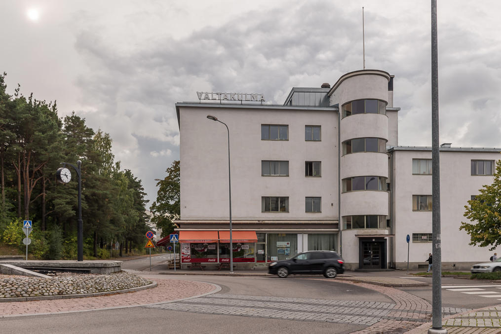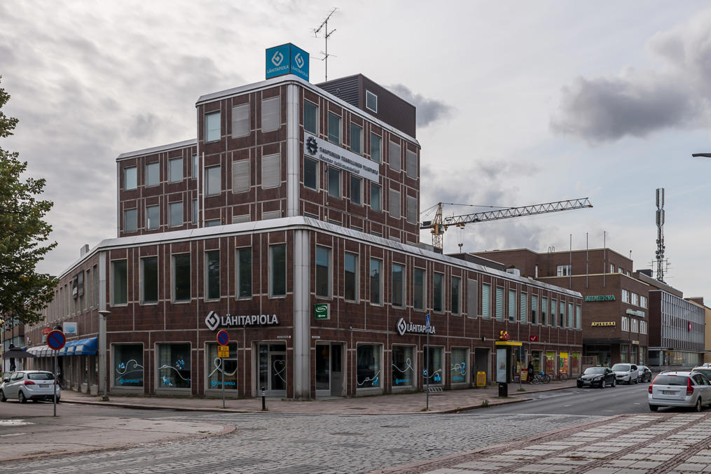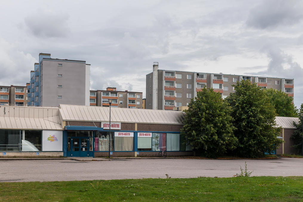 30. Обычные виды немолодого делового центра финского города.
