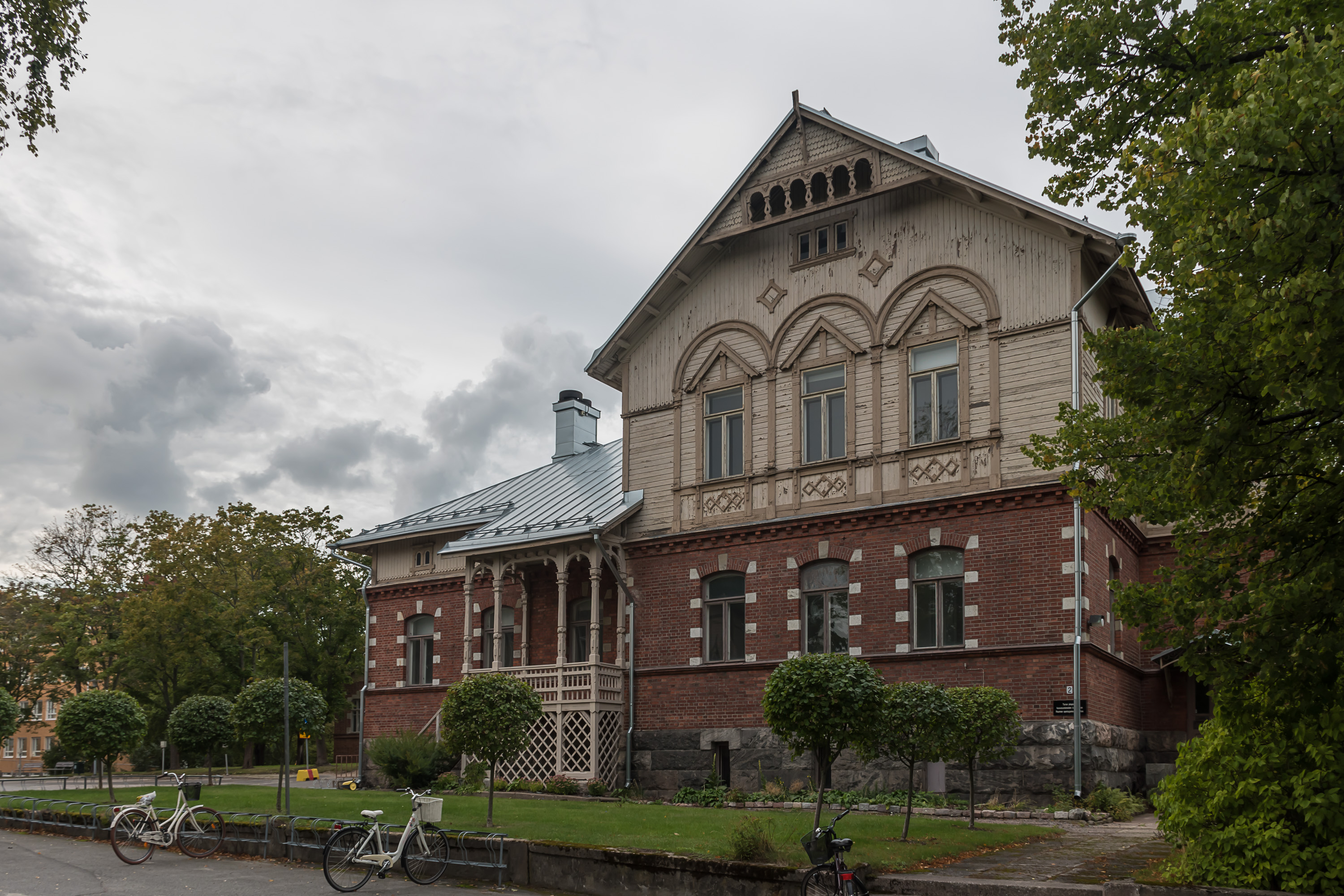 38. Семинарией — местом, где учили учителей — Раума в свое время тоже была известна, они были в довольно редких и почти исключительно небольших городах, первая в 1863 в Ювяскюля. Семинария в Рауме была открыта вместе с другими в Раахе, Хейноле и Каяани в 1890-х. К сожалению, главное здание и его сад я пропустил, на фото бывшая администрация, изначально директорский дом. Учителей в Рауме обучают в бывшей семинарии до сих пор — теперь это кампус Туркусского университета.