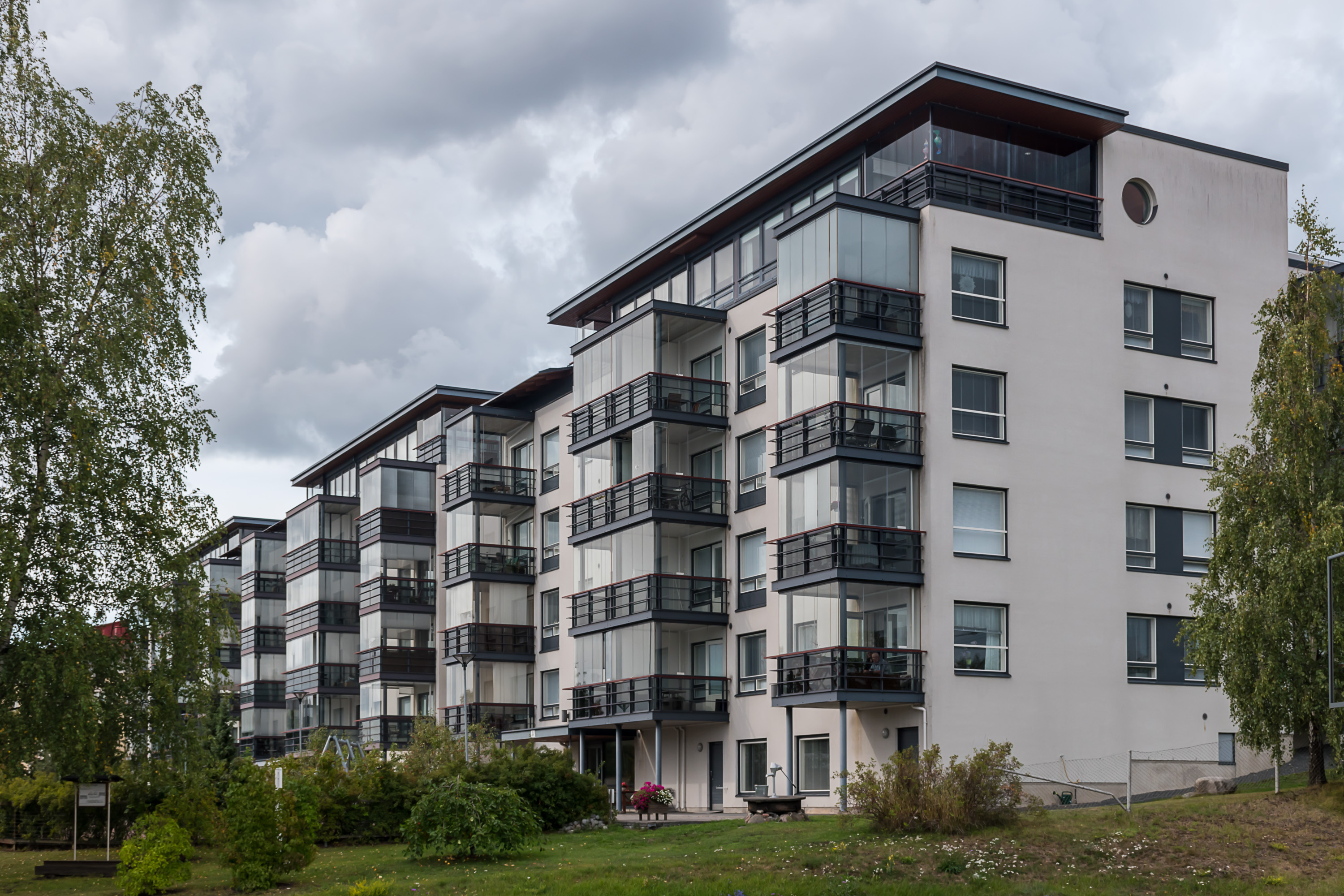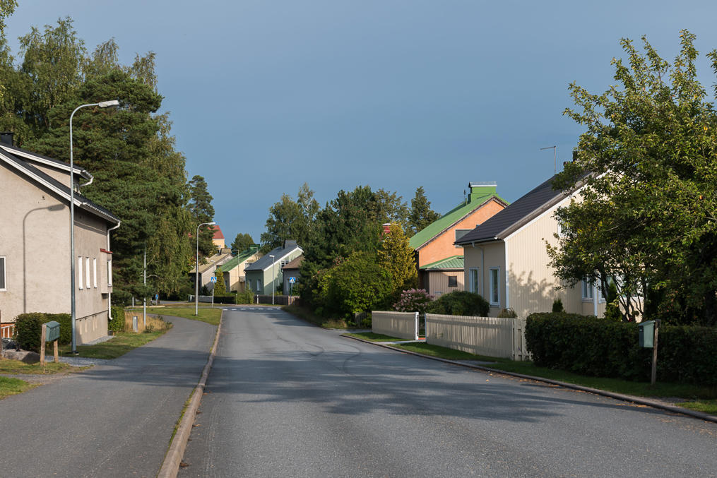 47. И обратно в центр через один из районов "домов фронтовиков" (rintamamiestalo) — характерных типовых полутораэтажных частных домиков, квадратных, не считая сеней, повсеместно строившихся в Финляндии после войны.