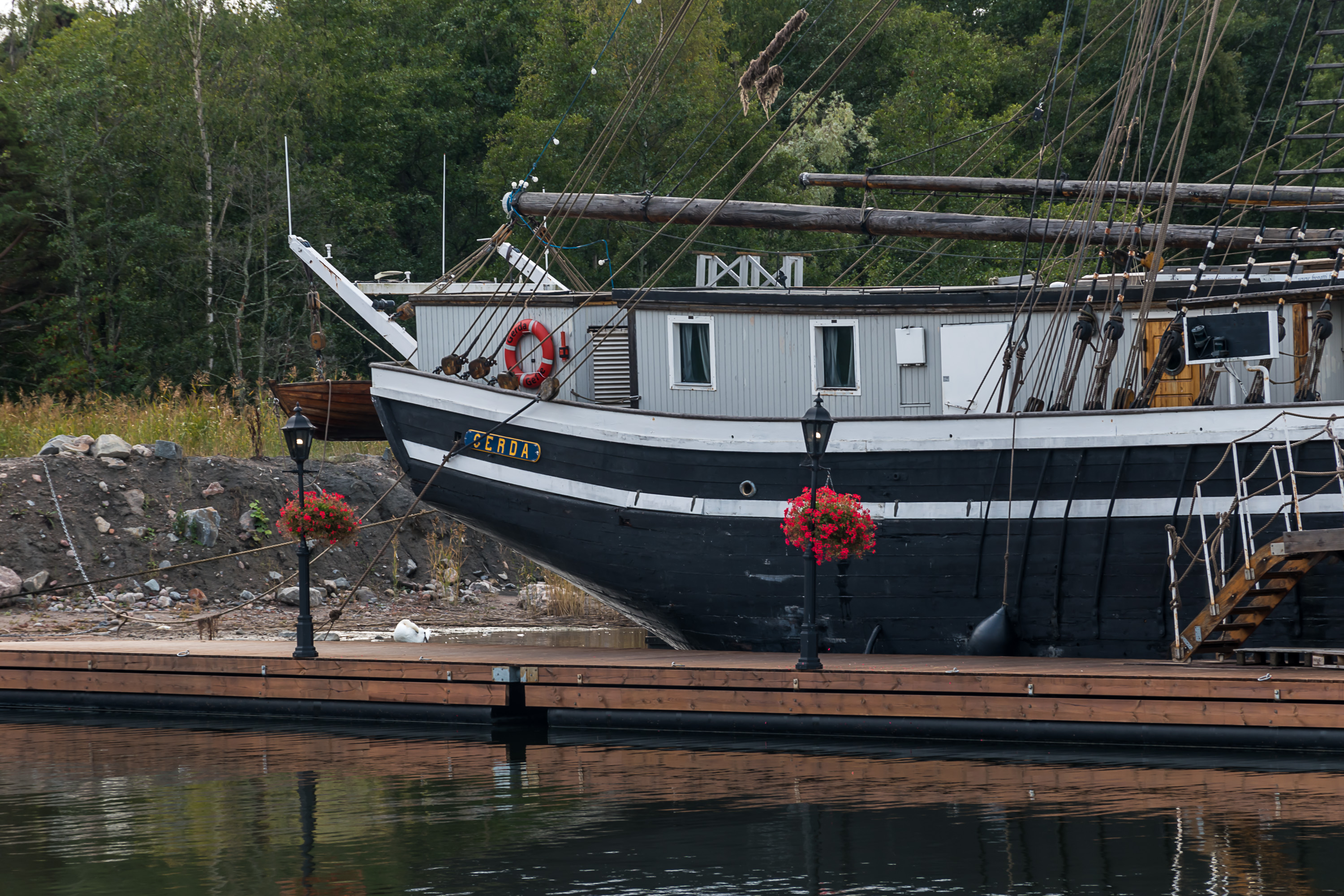 16. Бриг "Герда", копия построенного в шведском Евле брига, существовавшего в 1868-1959 и в последние десятилетия бывшего музейным судном. Копию "Герды" построили в Евле в 2005, но содержать не смогли, продали в Финляндию, и с 2015 она находилась тут, будучи единственным действующим парусником Финляндии с прямым парусным вооружением. К сожалению, осенью 2023 она затонула прямо в гавани по самые борта, внутри вода стояла. Поднять и починить можно было бы в теории, но дорого и сложно. Красавец-бриг разобрали и разломали в конце 2023.