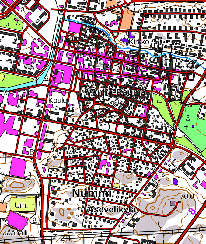 1. Начнем, конечно, со Старой Раумы, хотя осмотрим и остальной город. На карте средневековая сетка улиц Раумы выглядит так.