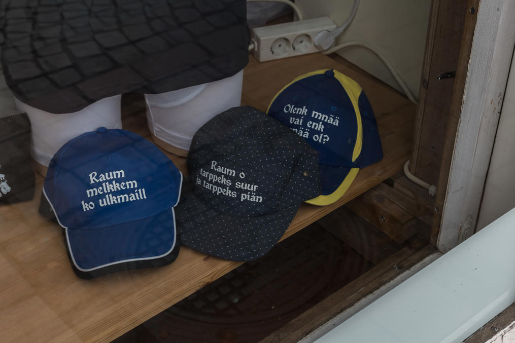 4. В Рауме бросаются в глаза местами надписи на местном диалекте финского. Свои собственные говоры есть в почти всех краях Финляндии, но редко когда они столь сильно на виду, а раумский, rauman giäl, еще и выглядит довольно необычно — хотя бы потому, что в нем согласные k/p/t часто озвончаются. В диалекте также очень много иностранных влияний за счет того, что Раума долго была важным портом, хотя в этих надписях таковых нет. Перевел пару надписей на литературный финский в меру разумения.