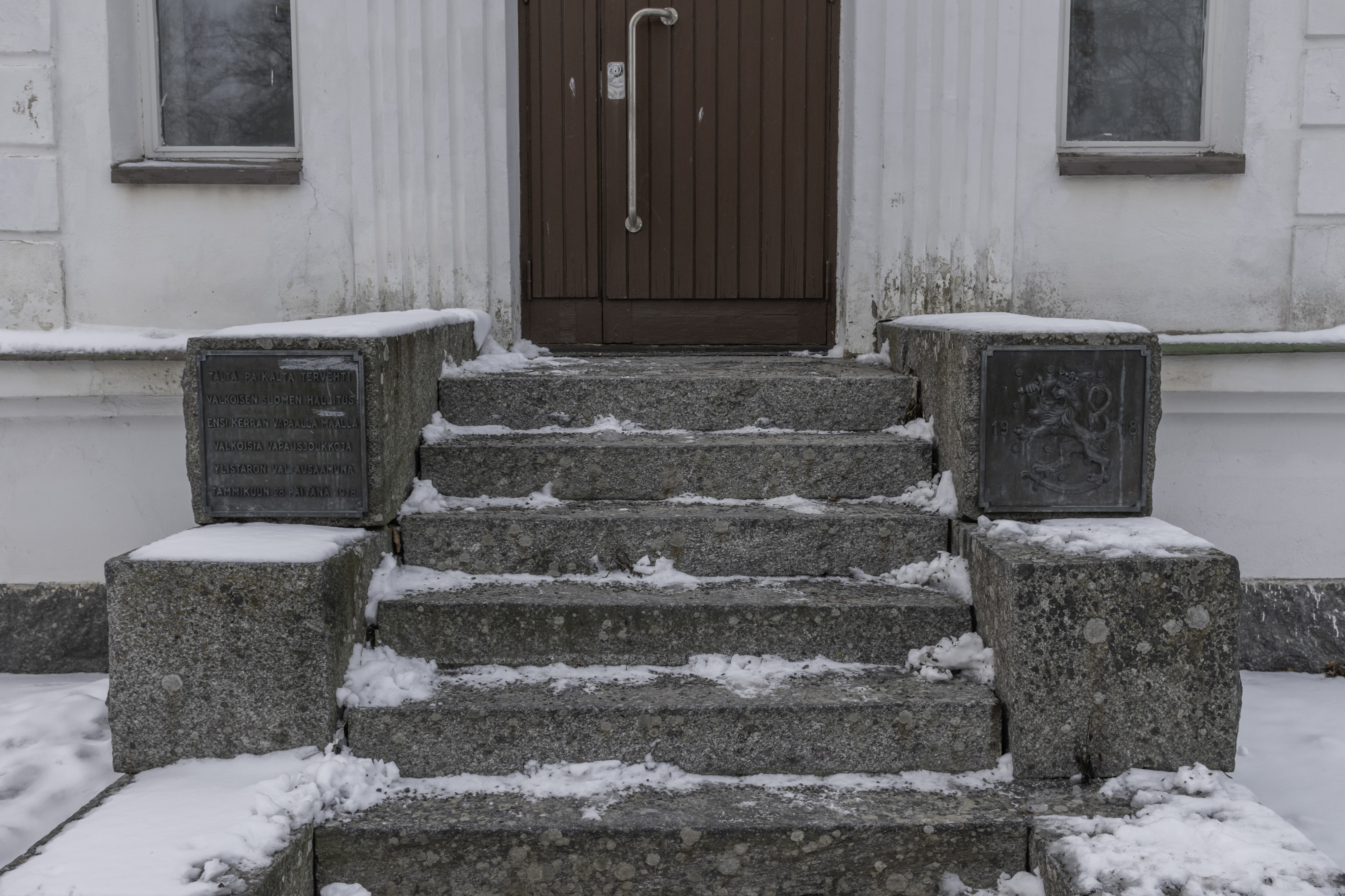 8. Здесь был более старый центр села, сохранились здания старой библиотеки (сейчас юношеский клуб, с флажками Украины на окне) и кооперативного молокозавода. Старые сельские молокозаводы Финляндии на удивление красивы.