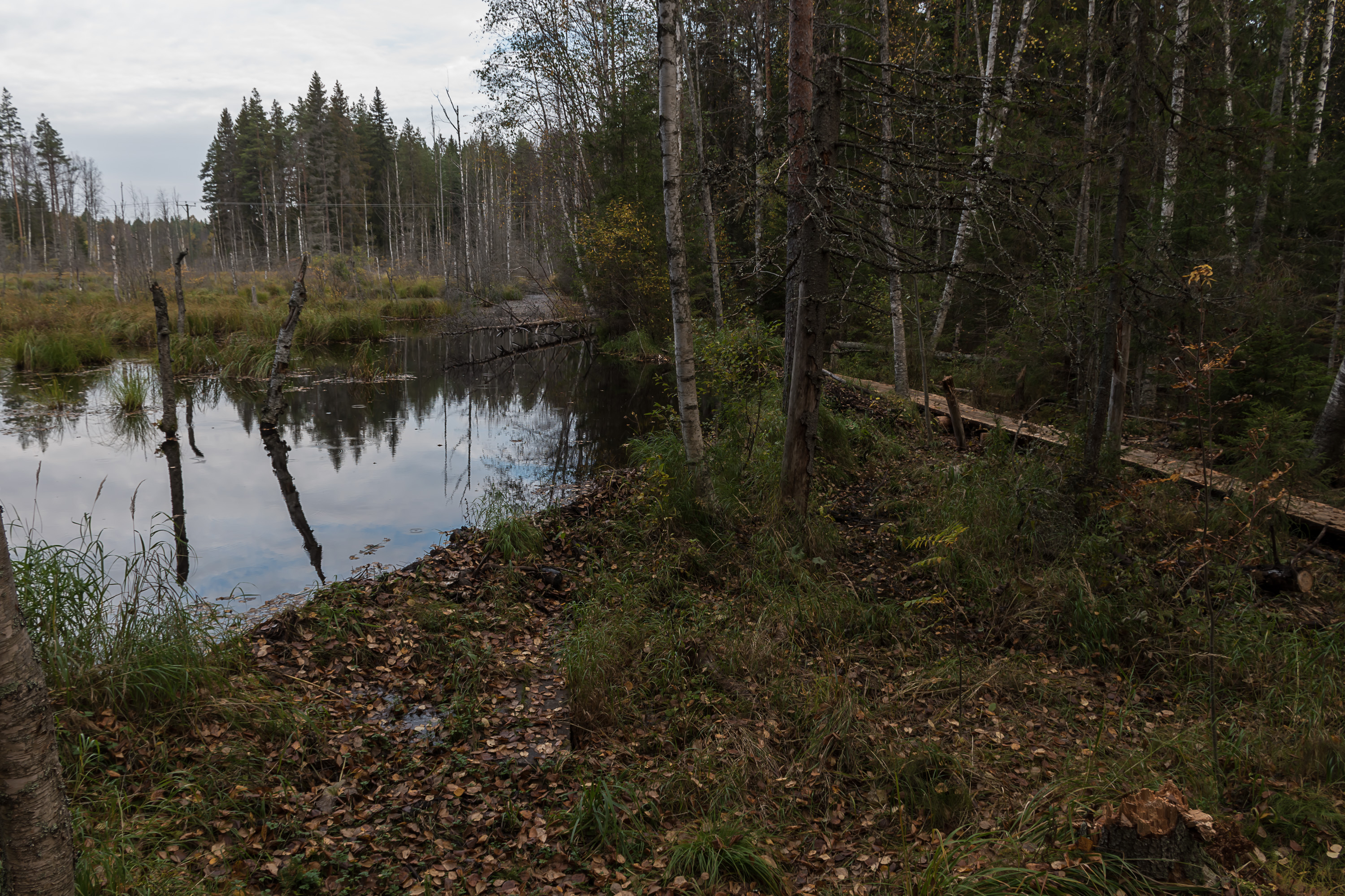 Я же из нетипичного только бобровую плотину встретил. Бобров в Финляндии на удивление мало; в свое время истребили, потом обратно стали завозить (в том числе по ошибке вместо европейских канадских, которые европейских вытесняют), популяция не особо большая. Но есть.