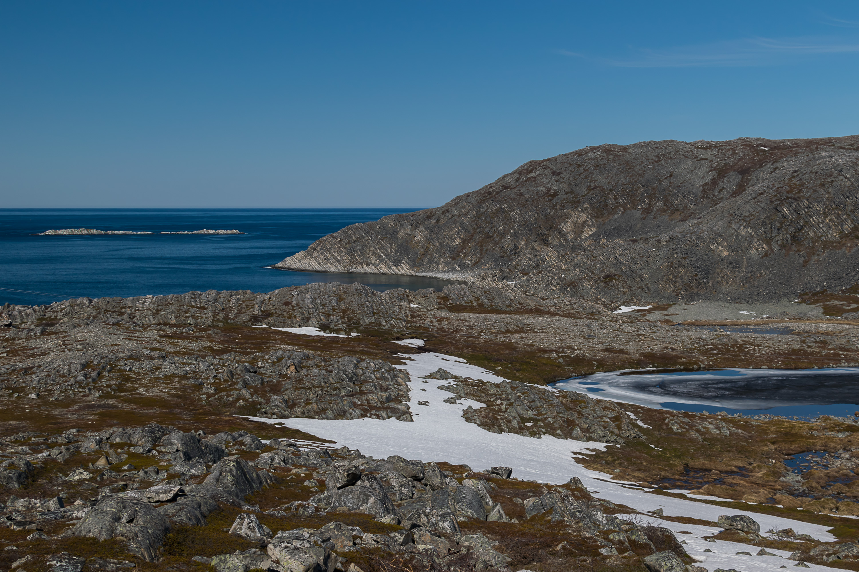Сам полуостров тоже в принципе является самой северной материковой точкой Европы; знаменитый Нордкапп севернее, но находится на острове. Эта часть Норвегии представляет собой тундру, голую, кроме мелких долин, и даже в начале июня на плато высотой до 300-350 м еще кругом снег.
