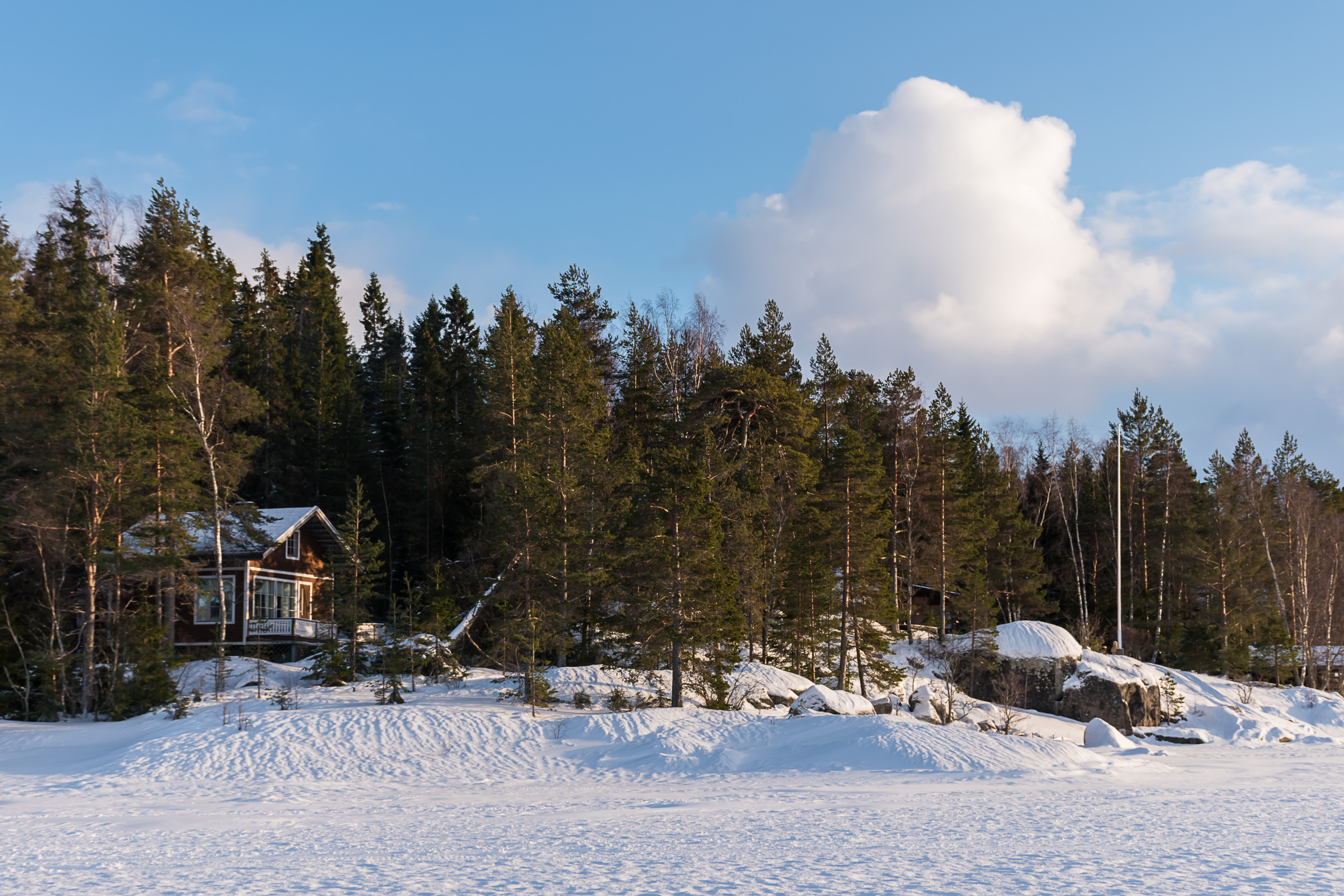 Берега островов архипелага, даже совсем маленьких, плотно застроены дачами. Я был на такой даче летом (на корпоративе), очень впечатлился. Плавают туда на своих лодках, конечно. Ну или зимой можно доехать.