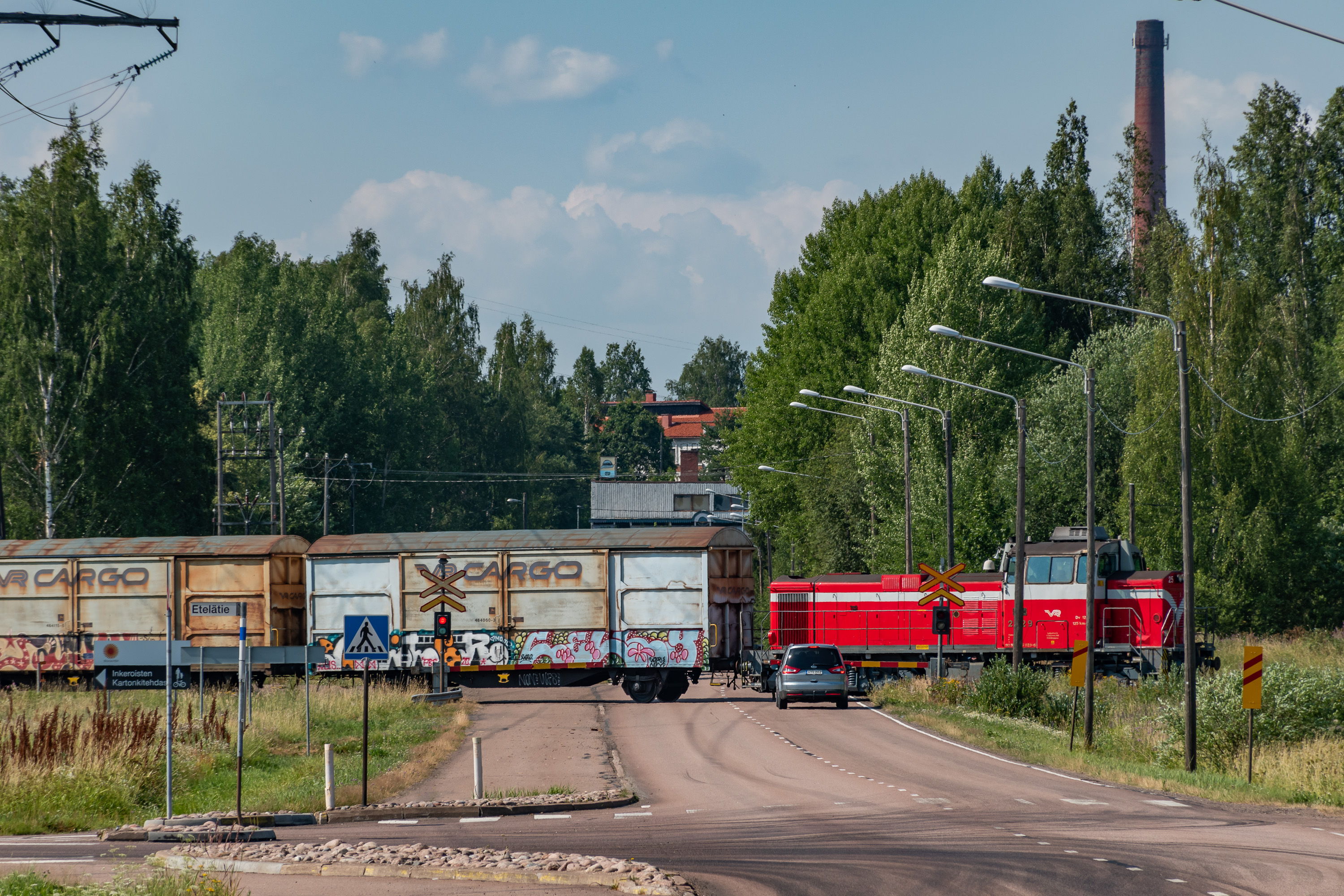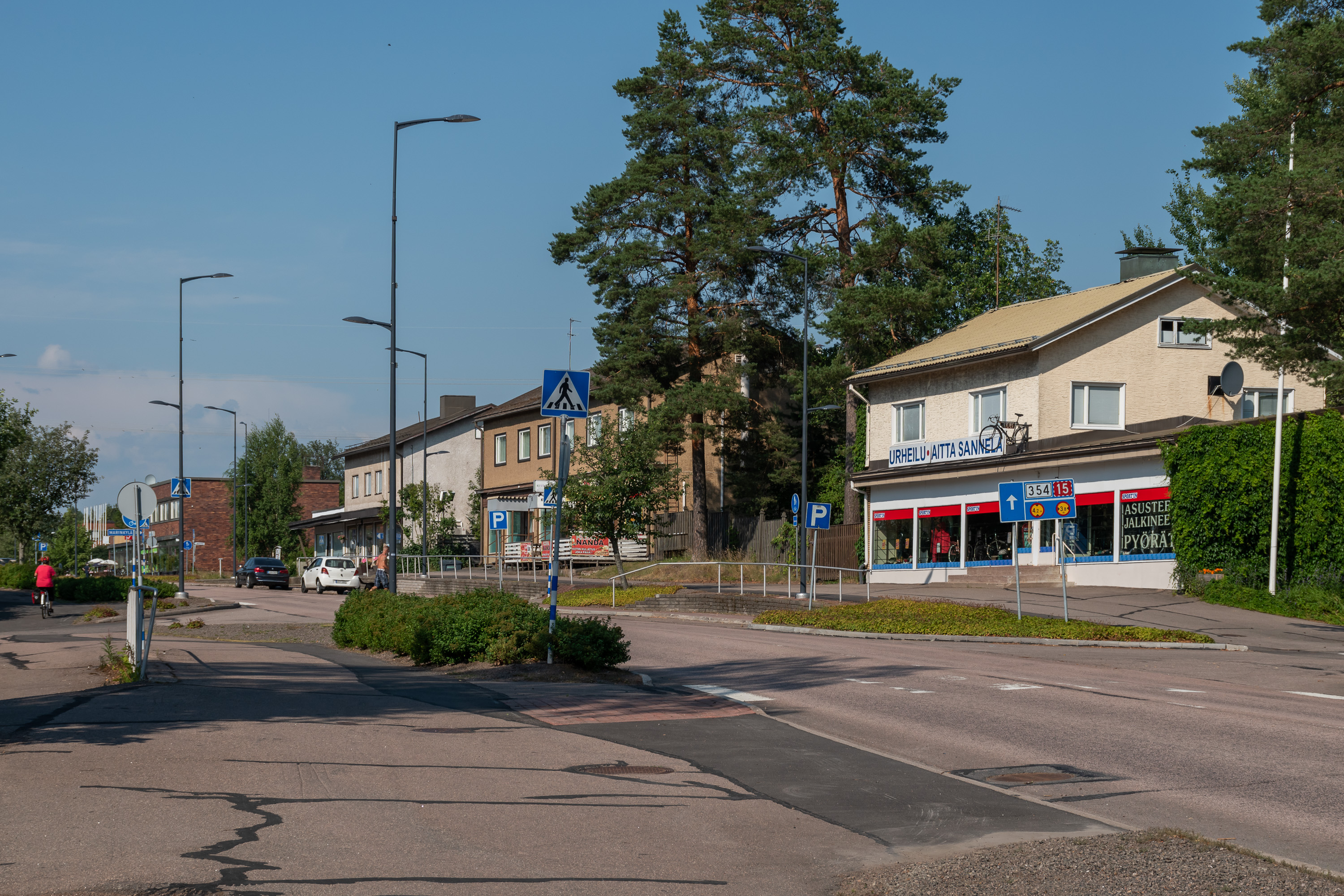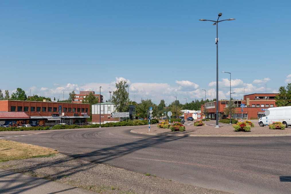 Посмотрим на поселок на полпути между Коуволой и Коткой — Инкеройнен (Inkeroinen), он же Аньяла (Anjala), 4.5 тыс. человек, административно с 2009 относится к Коуволе. Он вырос при бумажно-картонном комбинате, который действует (принадлежит Stora Enso) и к нему даже по подъездному пути что-то ездит. И электрички ходят, хоть станция и страшненькая.