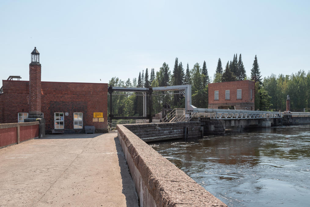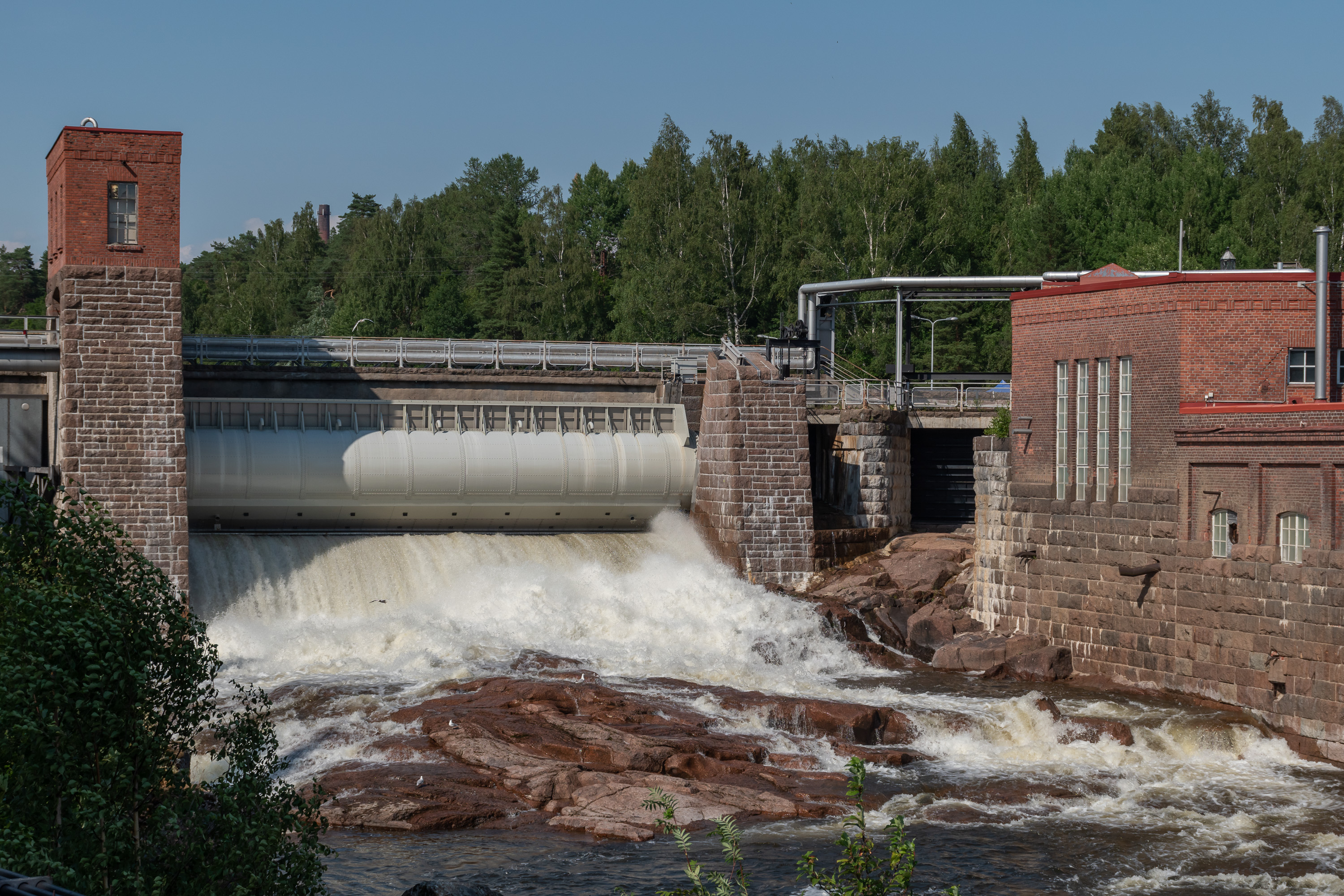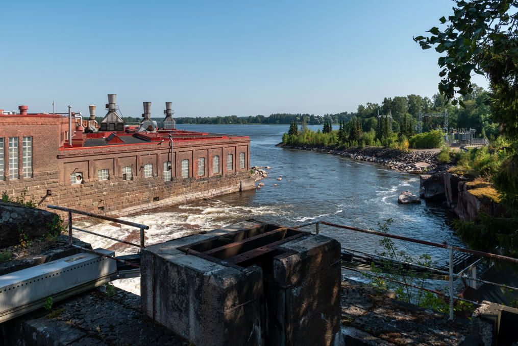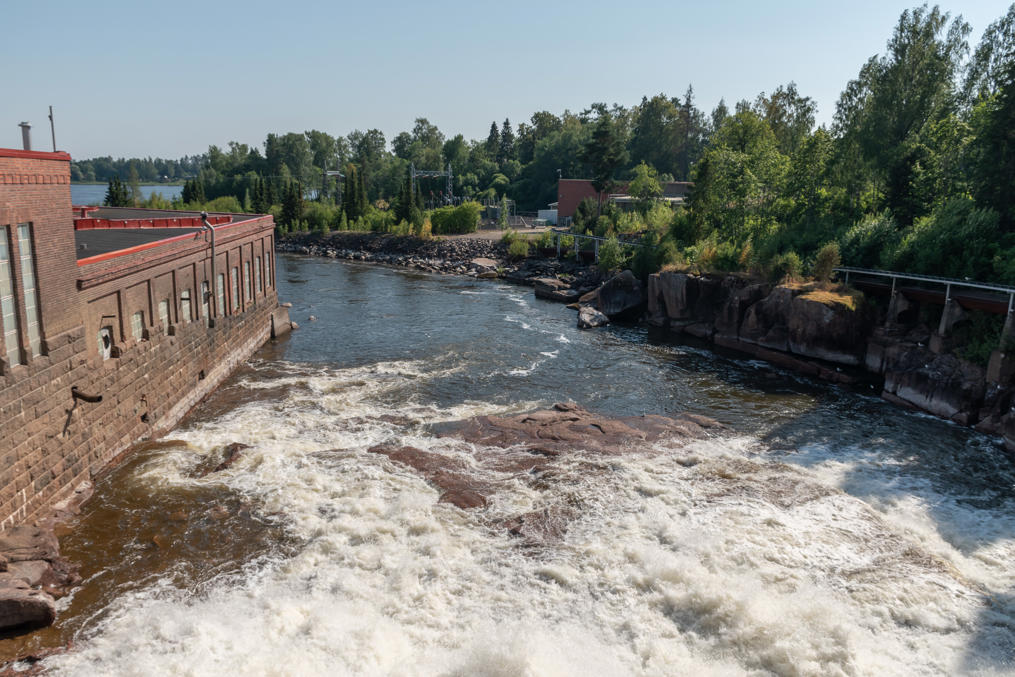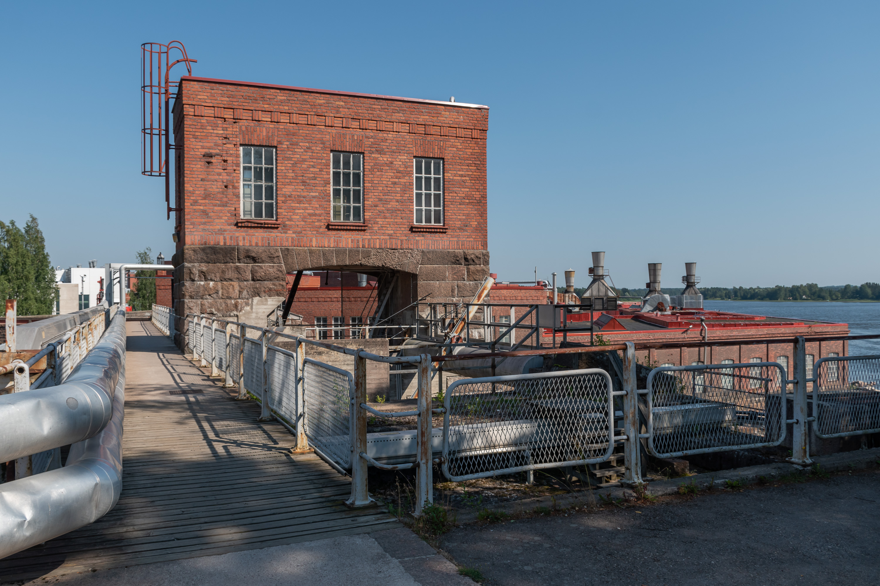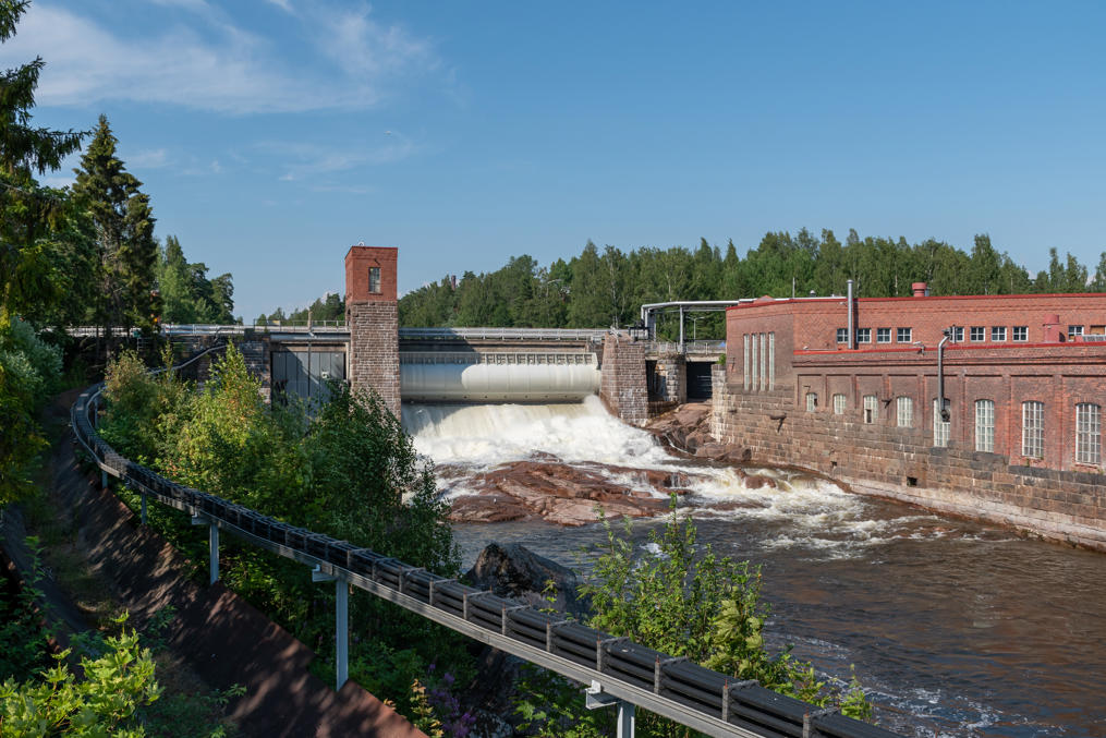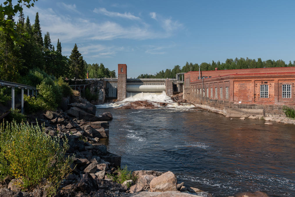 Заводы построены при водопаде Анккапурха (Ankkapurha) на реке Кюмийоки (Kymijoki), через которую спадает в Финский залив озерная система Пяйянне. Водопад, правда, теперь запряжен в две ГЭС общей мощностью под 40 МВт. Не знаю, всегда ли приоткрыт этот водосброс, но он довольно красив.