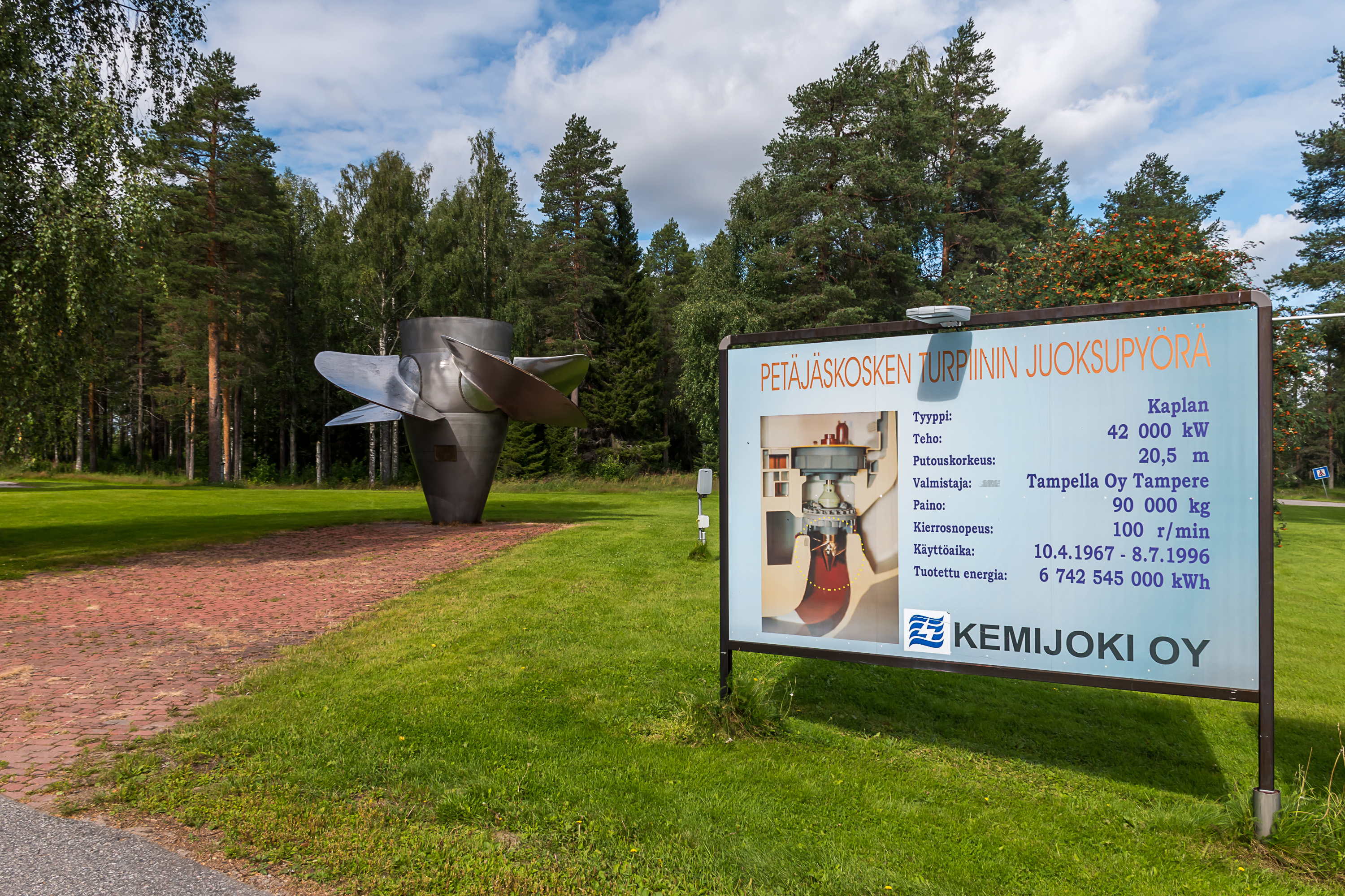 В поселке Мухос тоже стоит турбина в качестве памятника, подписанная как волшебная мельница изобилия из Калевалы, Сампо. Исторически энергетика Финляндии изначально строилась на ГЭС, и уже во второй половине 20 века, когда реки стали кончаться, перешли на ТЭС и немного АЭС. Но ГЭС остаются очень важны и в наши дни, несмотря на относительно малую суммарную мощность — это тот тип энергии, который легче всего оперативно регулировать, реагируя на изменения общего потребления электричества в энергосистеме страны.