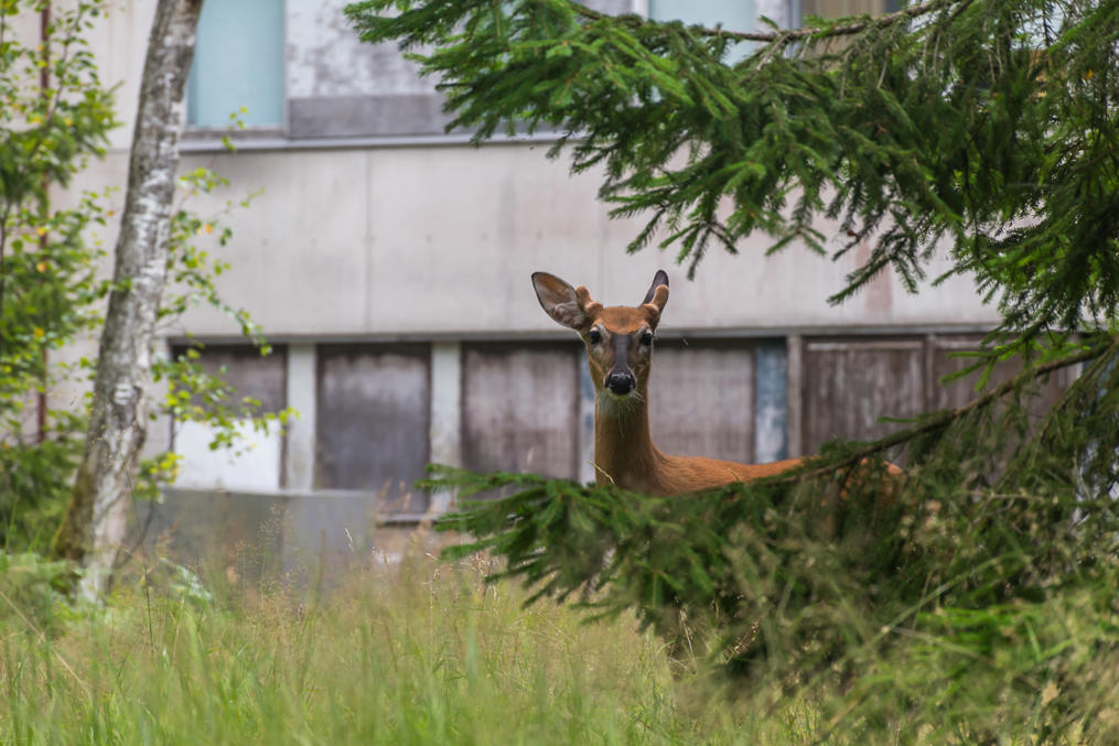 7. Но копать железную руду под морским дном оказалось все-таки невыгодно и шахту вскоре закрыли. С тех пор остались практически все постройки, включая жилые и хозяйственные, хотя полазить особо нельзя. Только белохвостые олени бродят, им-то что.