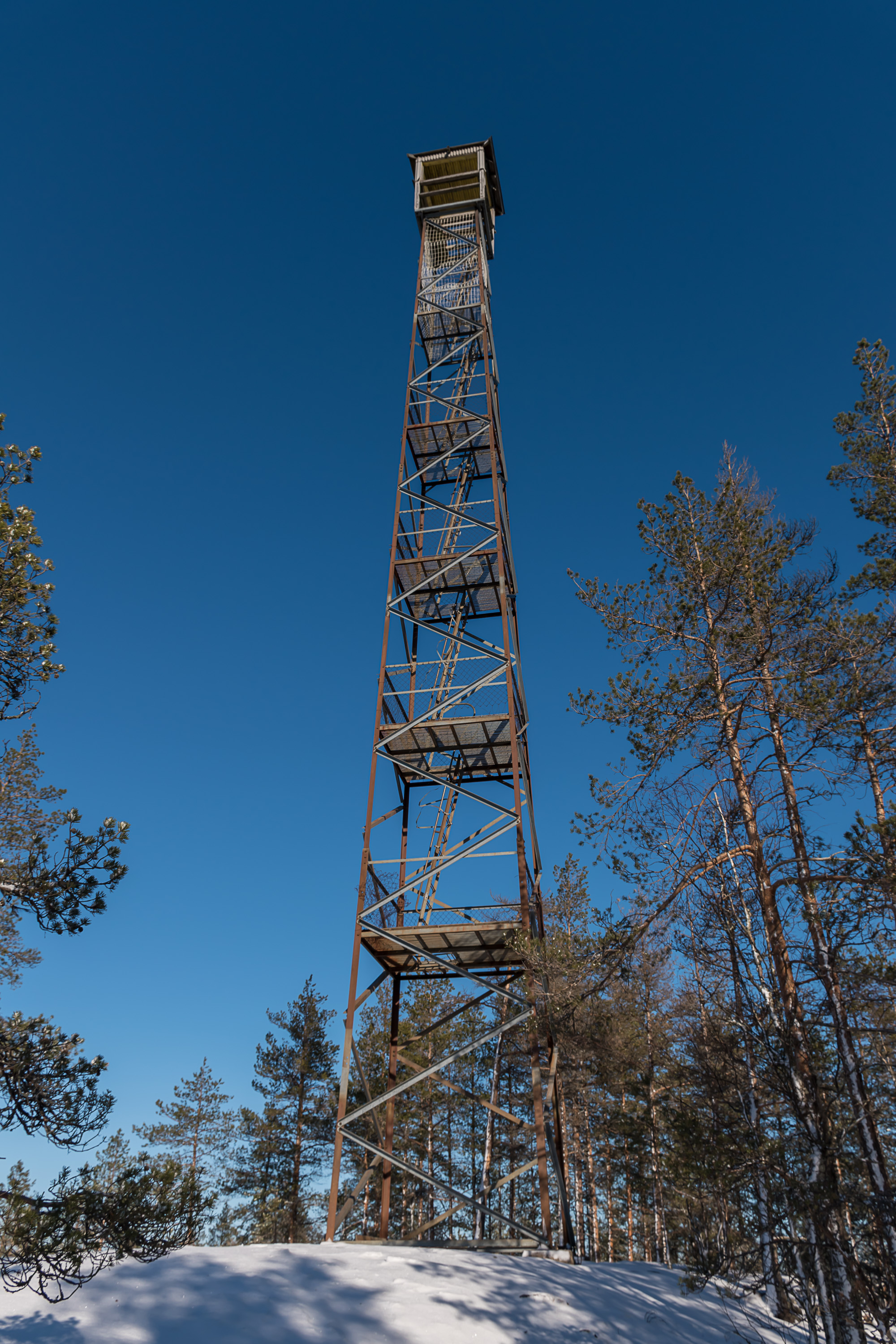 5. На вершине Пюхявуори была старая ржавая вышка для наблюдения за лесными пожарами. Она давно закрыта, а с тех пор в 2021 ее продали с молотка за пару тысяч евро, распилили и увезли :(
