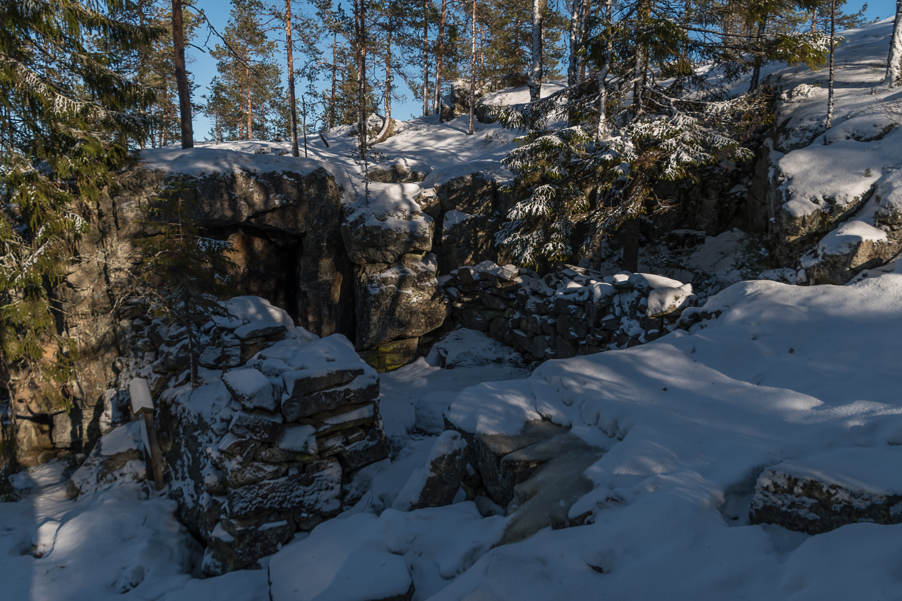 6. На вершине в 1920-х жил отшельник Яакко-Рейпаккский (Jaakko Reipakka), который когда-то уехал с женой за лучшей жизнью в Америку, вернулся мрачный и один, поселился тут. От него остался фундамент домика, в маленьком гроте была сауна. Под конец жизни его убедили-таки переехать в дом престарелых.