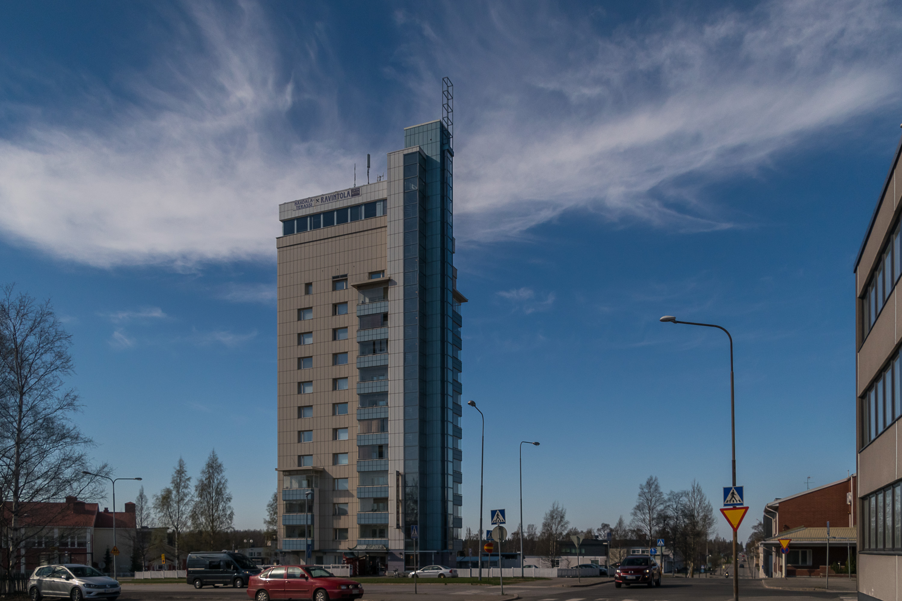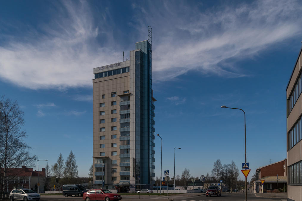 31. Единственная в городе высотка (вроде даже смотровая площадка есть, но вроде бы сейчас не действует). Дом построен совмещенным с водонапорной башней, как в Варкаусе, и, как и варкаусский, в свое время был самым высоким жилым домом Финляндии. В отличие от Варкауса, правда, старый бак с водой тут больше не используется, в 2019 построили новую водонапорку.