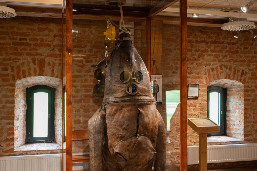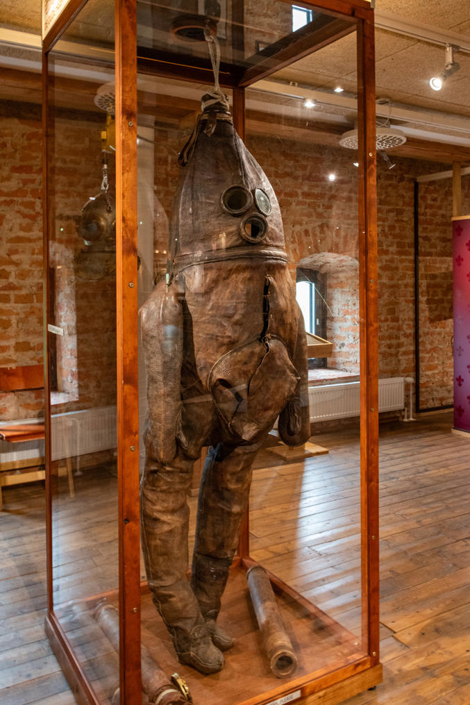 33. Именно в этом музее хранится самая главная знаменитость Раахе — самый старый в мире подводный скафандр, "Старый Господин" (Wanha herra). Не очень понятно, почему в этом, а не в том, что про мореплавание, ну да им виднее :)