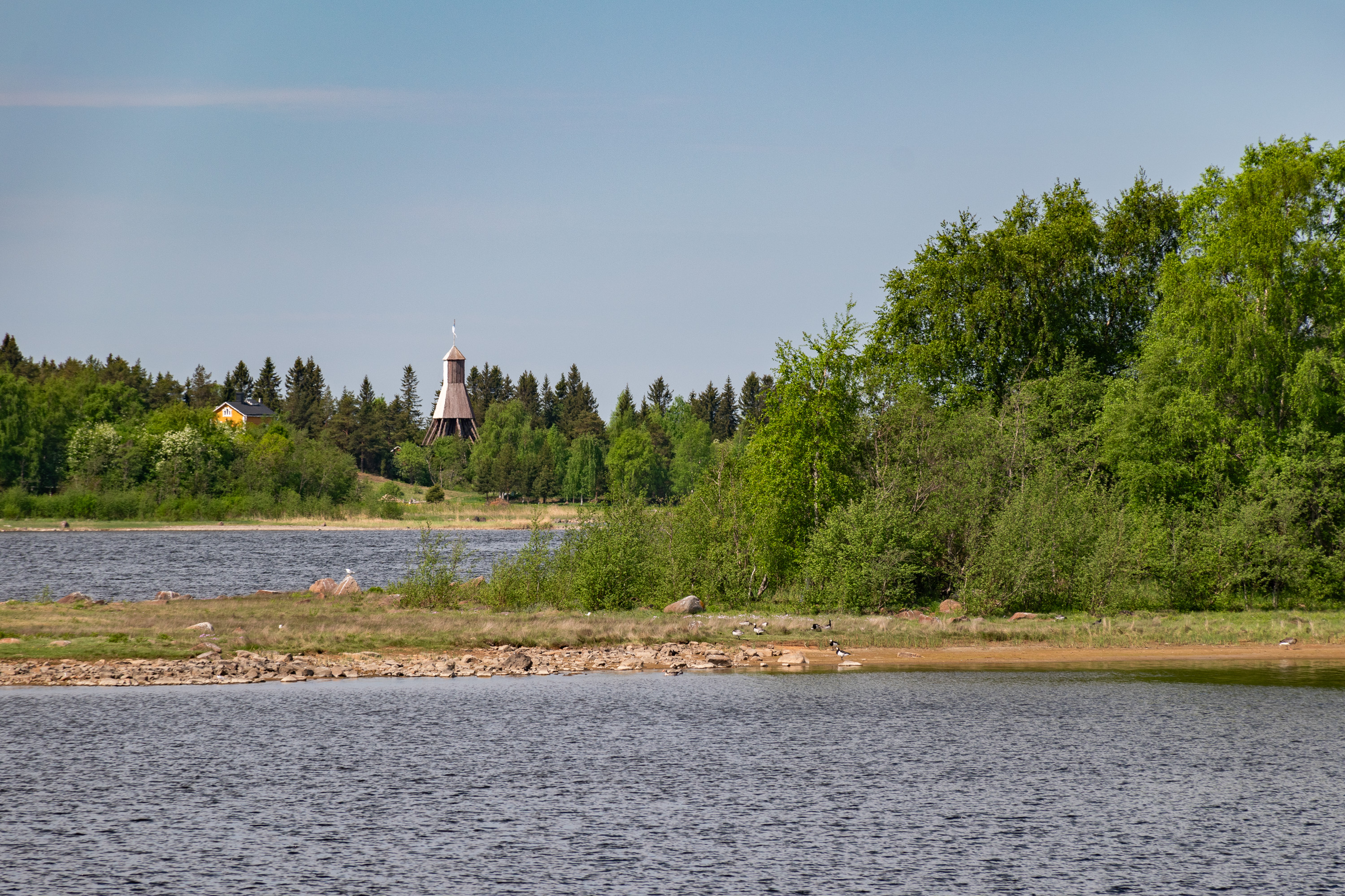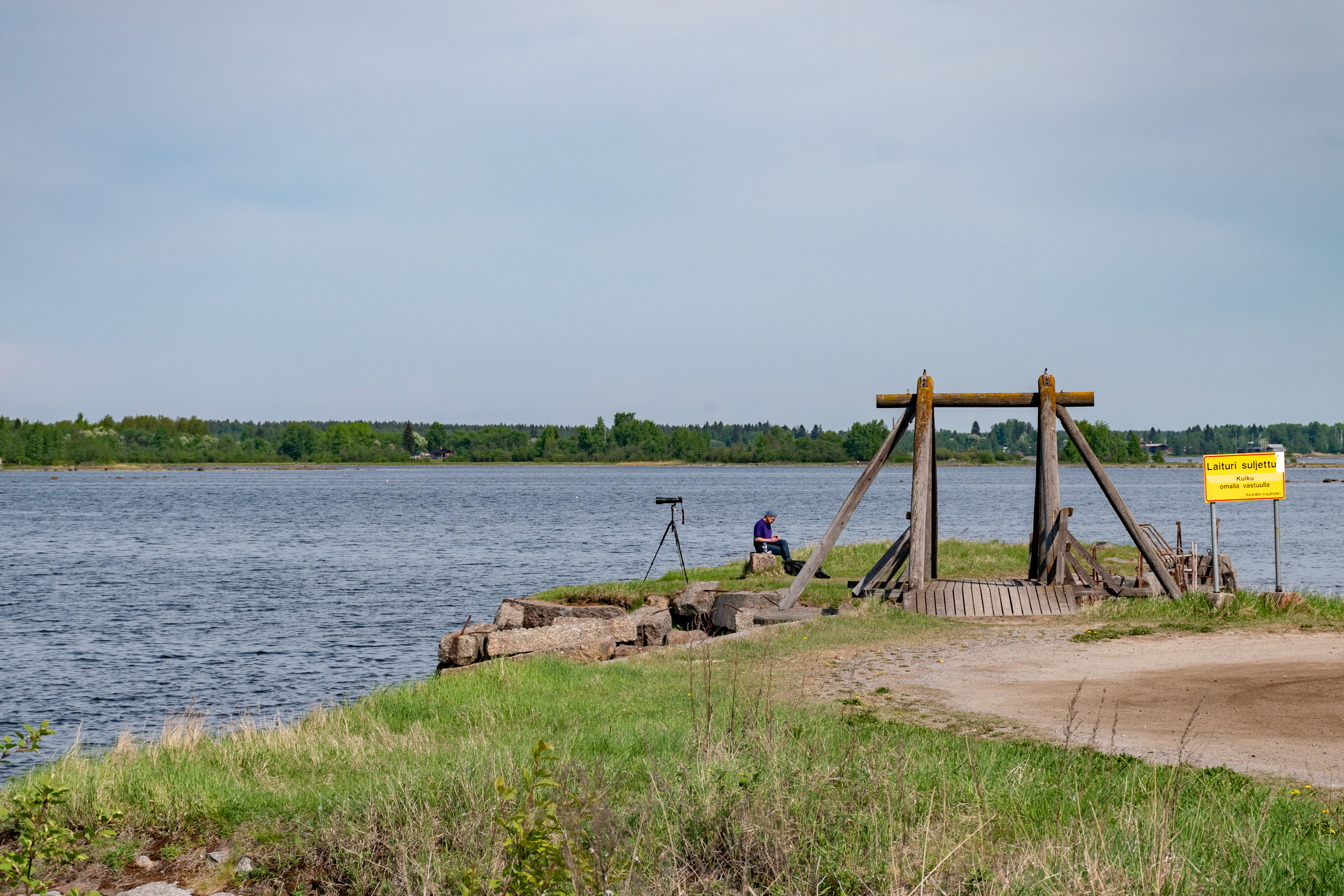 57. Гавань когда-то была еще ближе к домам, в местечке Майваперя (Maivaperä). Остатки пристани сохранились. На востоке виден шпиль церкви и единственная высотка центра Раахе, на западе — деревянный маяк (точнее, дневной знак) острова Исо-Краасели. Kraaseli от шведского gråsäl, "серый тюлень".