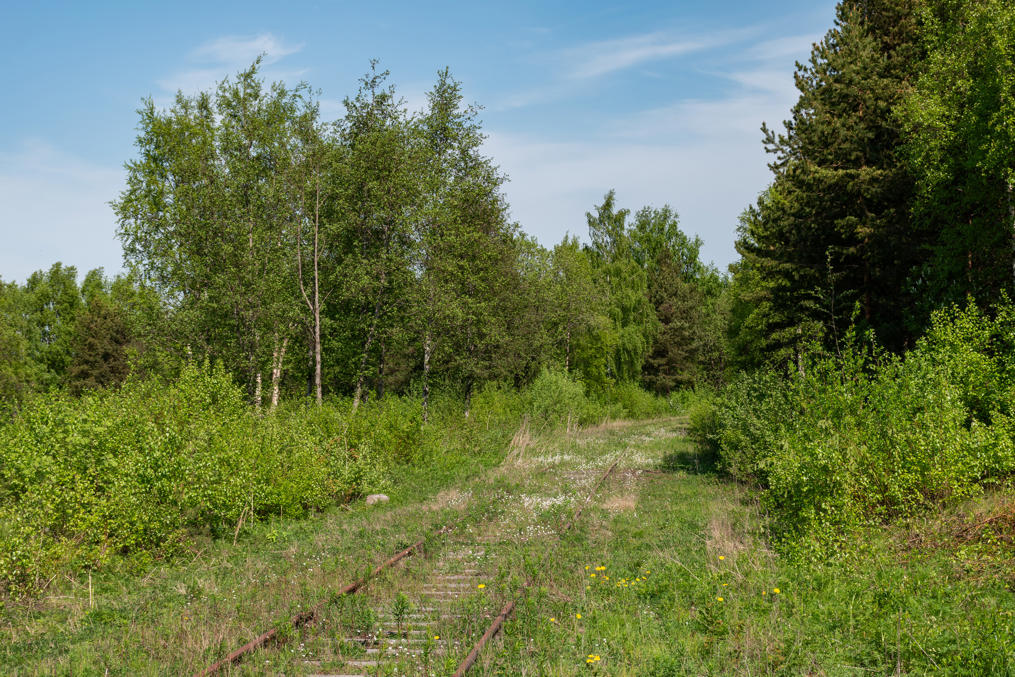 54. Романтично зарастают травой ржавые рельсы железнодорожной линии в гавань, формально еще действующей. Опять же на завод SSAB есть другая ветка, электрифицированная, а эта старая осталась в стороне.