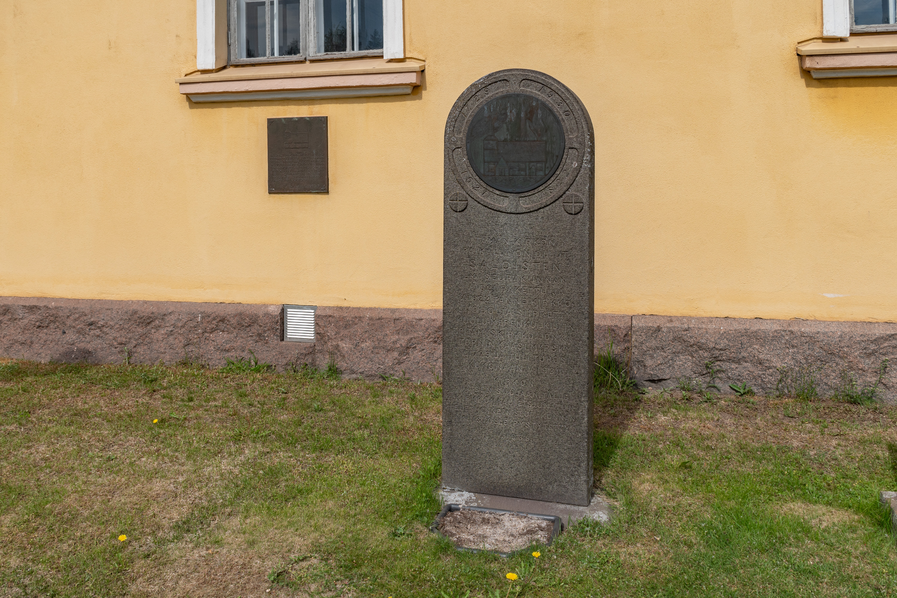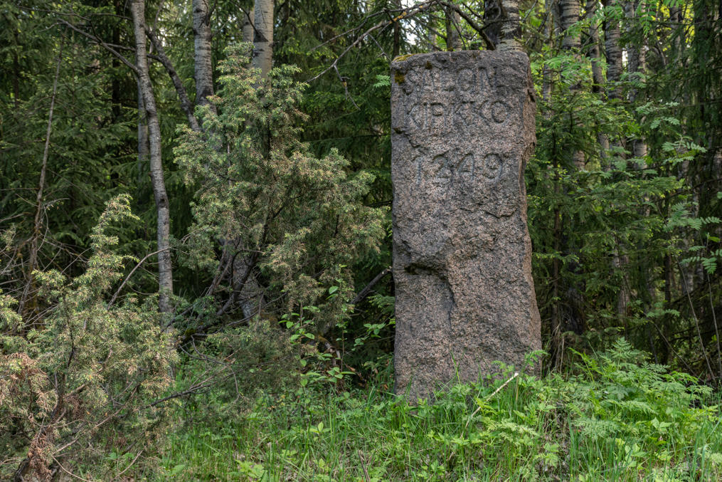 51. На предположительном месте самой старой церкви Салойнена, у полузаброшенной дороги в промзоны, можно найти не менее полузаброшенный памятник, но дата на нем, 1249, скорее всего все-таки перебор, в реальности по мнению большинства историков Салойнен был основан (и первая церковь построена) в 14 веке.