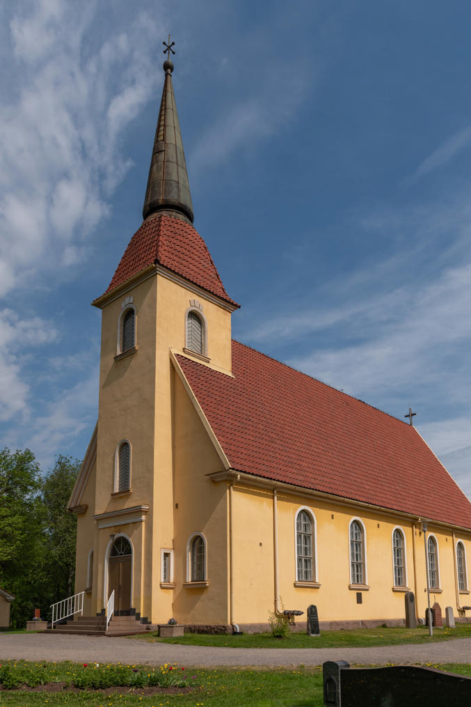 12. Каменная церковь Стенбека 1912 года и традиционные воинские памятники и кладбище перед ней. До этого была деревянная 1655 года, но сгорела.