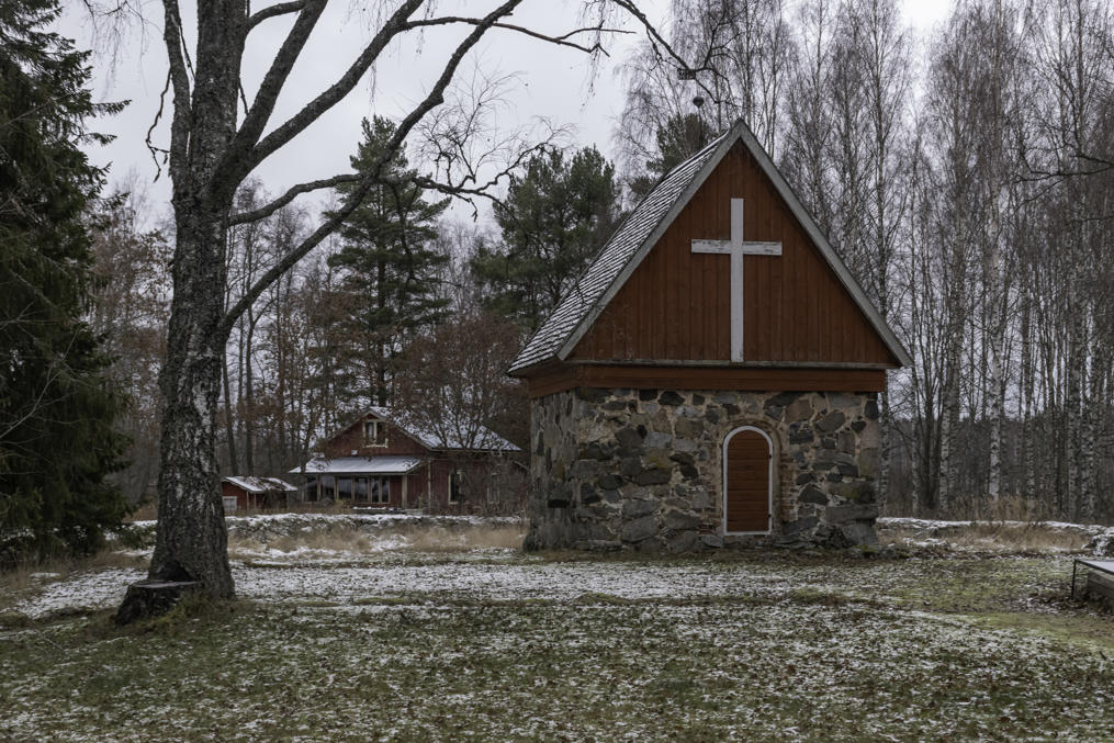 Но по дороге я не встретил ничего интересного, кроме каменного мостика и ризницы, оставшейся от первой, средневековой, местной церкви. Да пара оленей где-то вдалеке на краю ноябрьских полей пробежала разок.