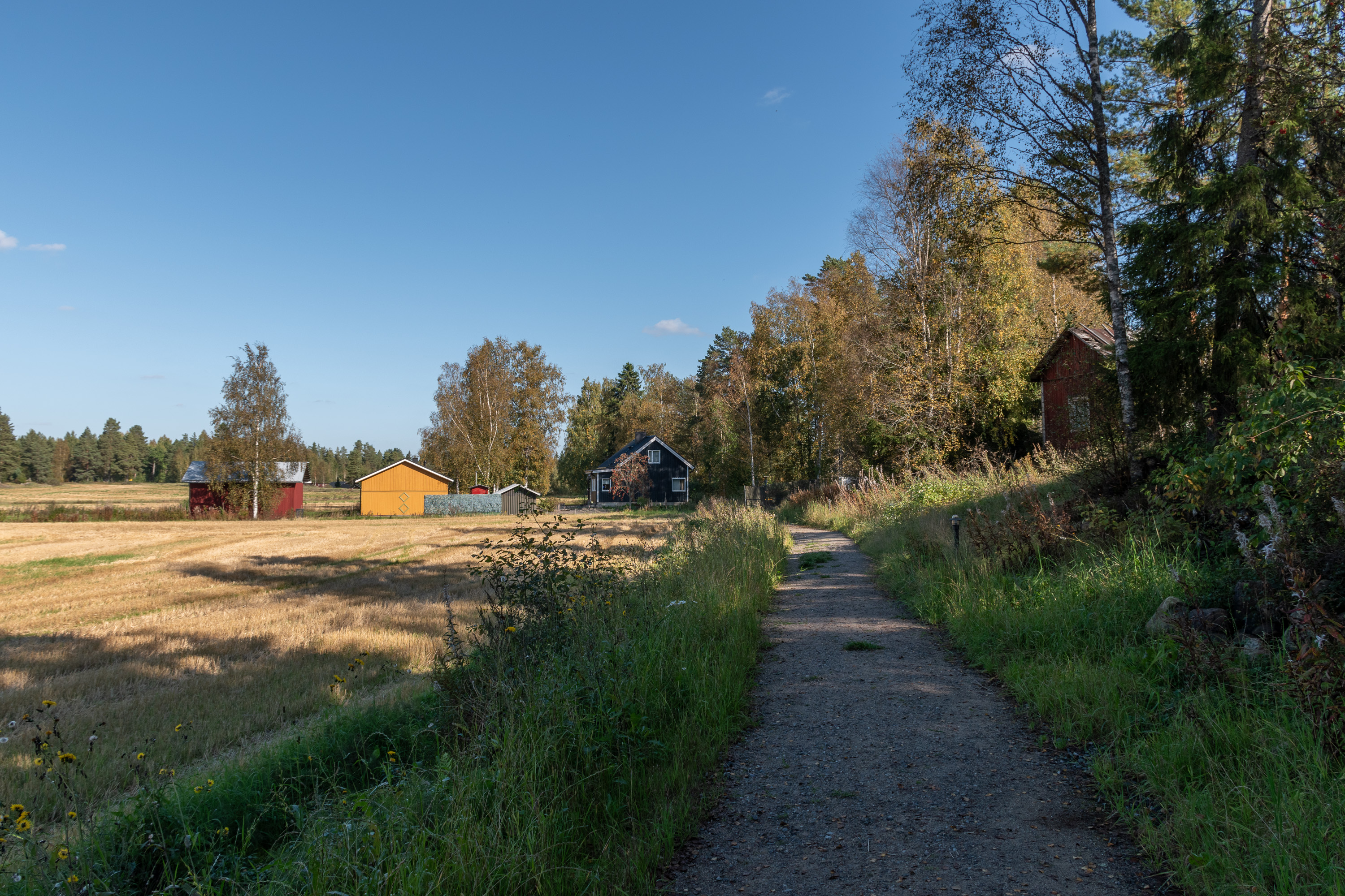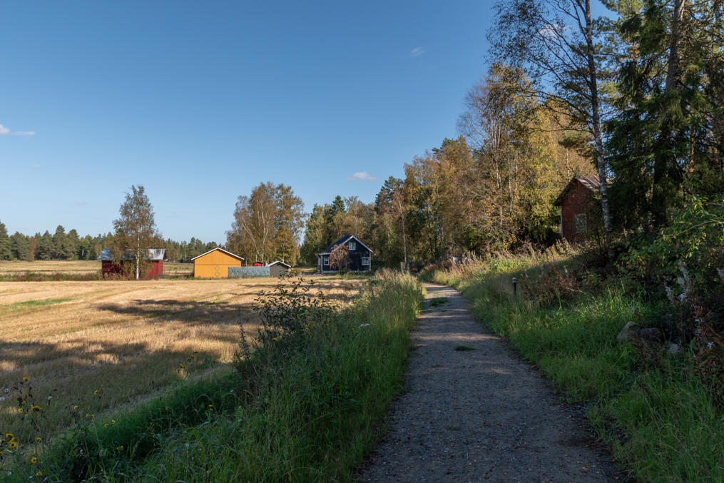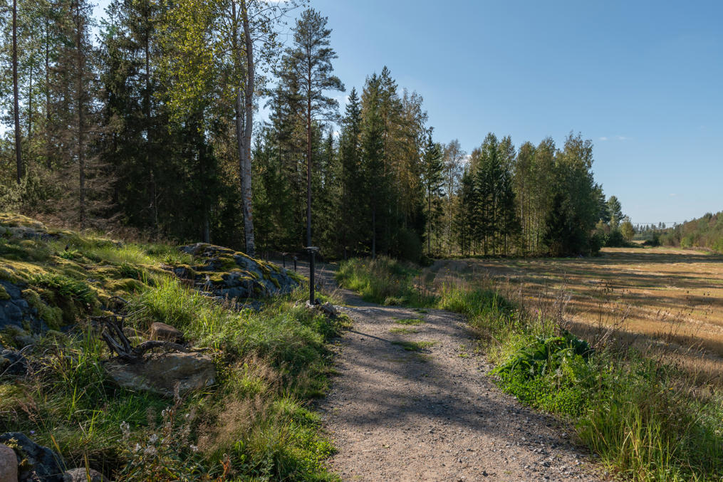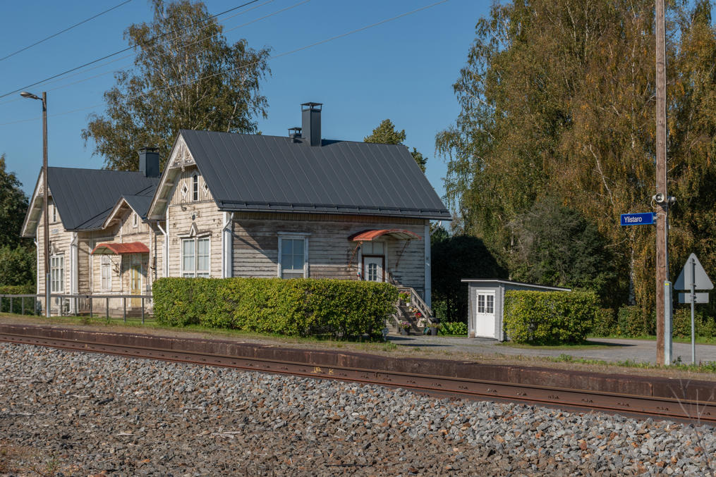 2. Тропу к рудникам, как и было сказано, решила обустроить ассоциация жителей района станционного поселка. Поселок при ст. Юлистаро железной дороги Сейняйоки-Вааса совсем небольшой, отстоит на 3 км на юг от основного села Юлистаро. Поезда тут не останавливаются с 2016 года, как и на двух других промежуточных станциях этой линии — почти никто не ездил, место, надо думать, было не очень удобное для станции — да и путевое развитие разобрали, хотя современные таблички с названием станции на платформе остаются. Деревянный вокзал, сохранившийся со времен строительства линии (1880-е), как обычно, давно продан под жилой дом — я сначала со стороны вокзала хотел подъехать, попробовать его снять, но в итоге заехал почти во двор, где на меня вопросительно смотрел мужик на газонокосилке. Я сделал вид, что случайно не туда свернул, и поехал обратно задом по узкой дорожке :) По пути дальше от станции к рудникам еще пришлось в начале главной гравийки объехать ее по более мелкой — участок был закрыт, мотогонки местные шли, народу и припаркованных машин куча. Всегда приятно видеть, когда идет до сих пор жизнь и в такой глубинке.