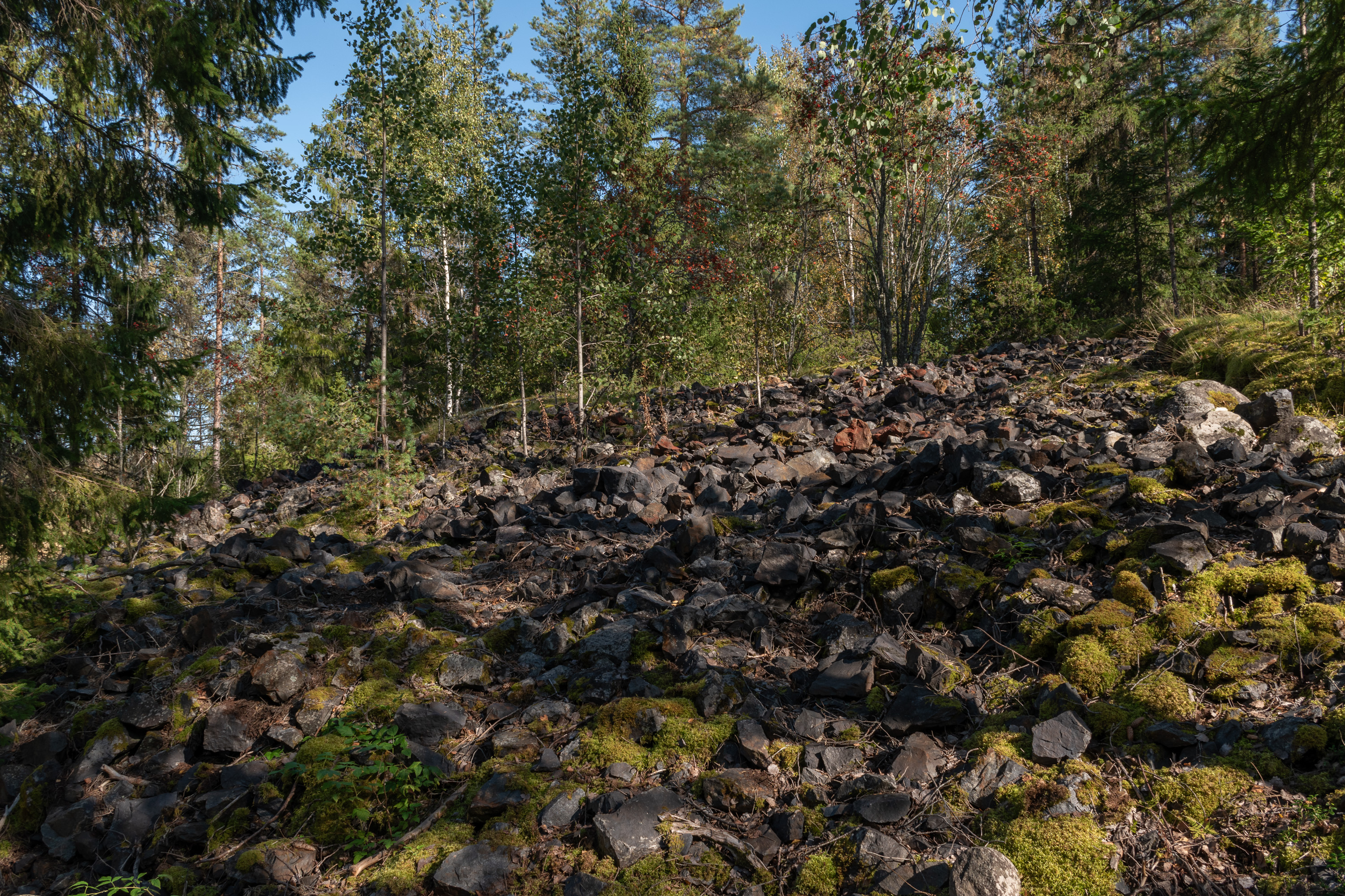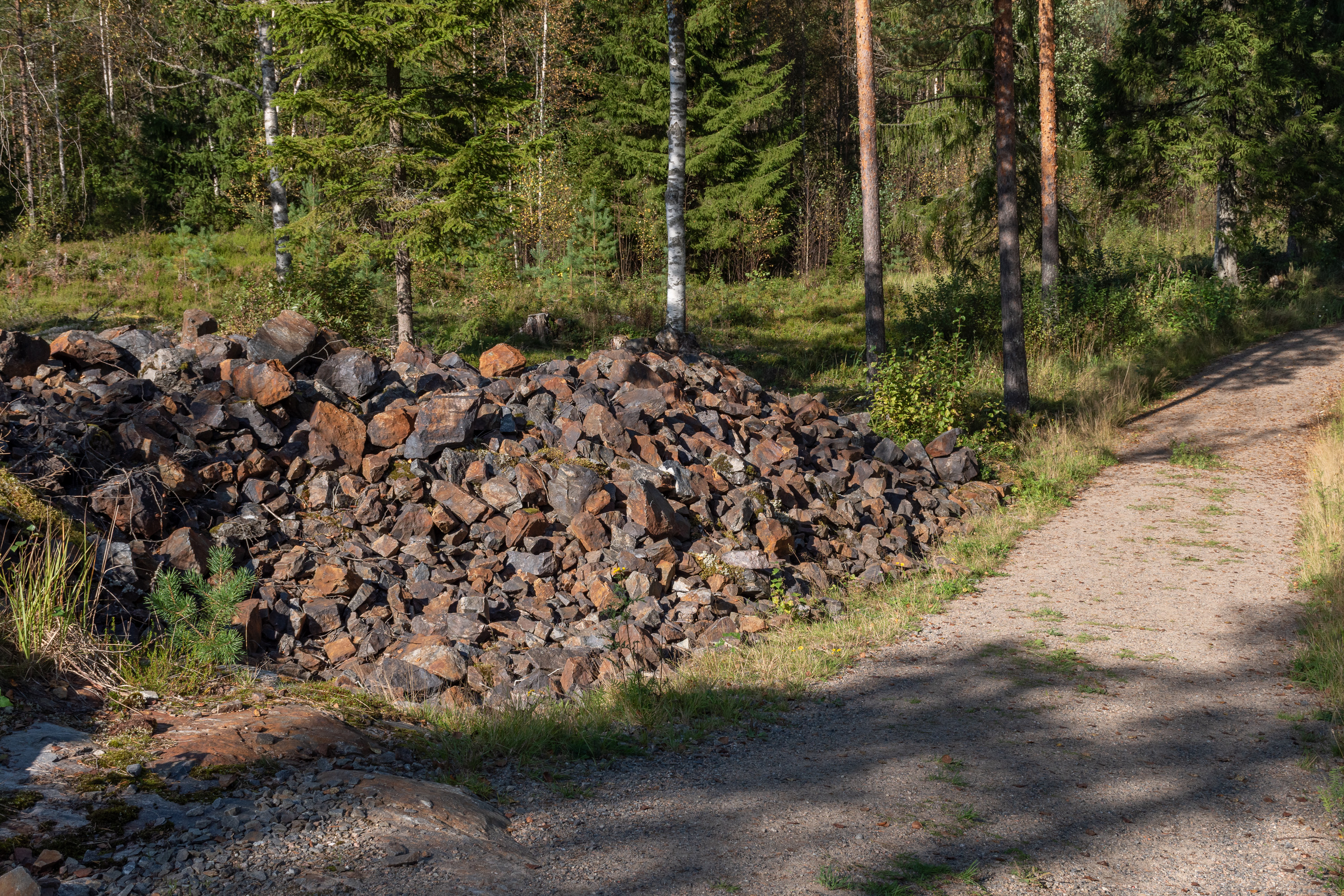1. Ну, посмотрим теперь на рудник поближе. Место находится у довольно пустынного участка гравийки через лес с редкими отдельными мелкими хуторами и деревнями на несколько домов — типичное остроботнийское междуречье. Гравийка эта, однако, является на самом деле самой старой дорогой в этих местах — это Кюрёнкангасский тракт (Kyrönkankaan kesätie), первая дорога из Хямеэнлинны на Ваасу, а до основания Ваасы — в крепость Корсхольм. Самый известный сохранившийся старый участок этой дороги находится в национальном парке Кауханева-Похьянкангас. В своей северной части дорога следует долиной реки Кюрёнйоки, но в конкретно этом месте срезает путь через этот лес — река между Илмайоки и Юлистаро делает большой неудобный изгиб на восток. По этой дороге ходили короли Густав-Адольф II и Адольф-Фредрик, войска наместника Класа Флеминга на подавление крупного крестьянского восстания, Дубинной войны 1596-1597, и войска генерала Голицына на битву при Напуе в Великую Северную войну в 1714, ознаменовавшую начало Великого Лихолетья — временной русской оккупации Финляндии.