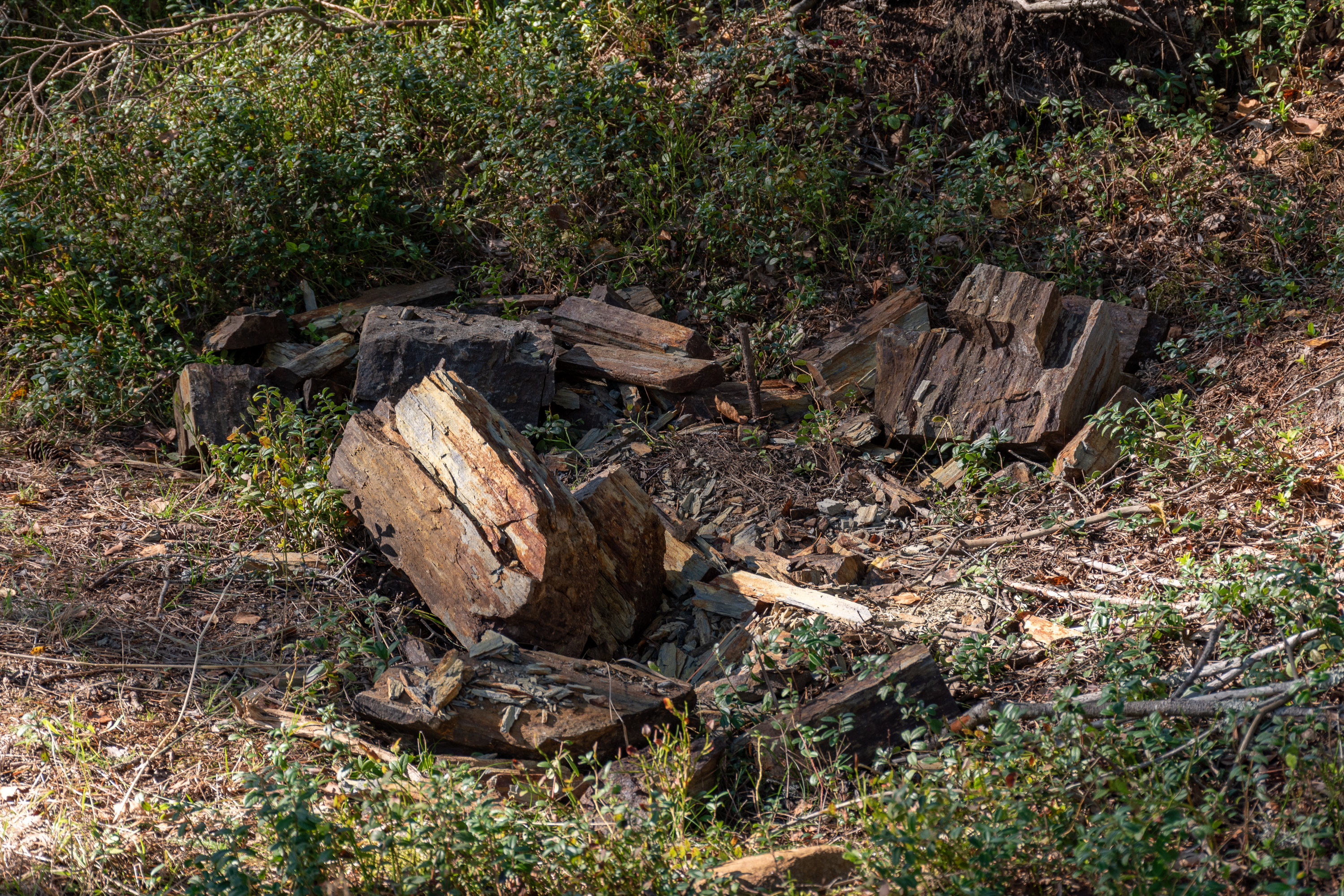 8. В рудник номер три, 18-19 веков, разрабатывавшийся порохом, эту породу тоже сваливали. Ямы пришлось в процессе обустройства тропы очистить от сваливавшихся туда отходов рубки леса, но породу, конечно, доставать никто не стал.
