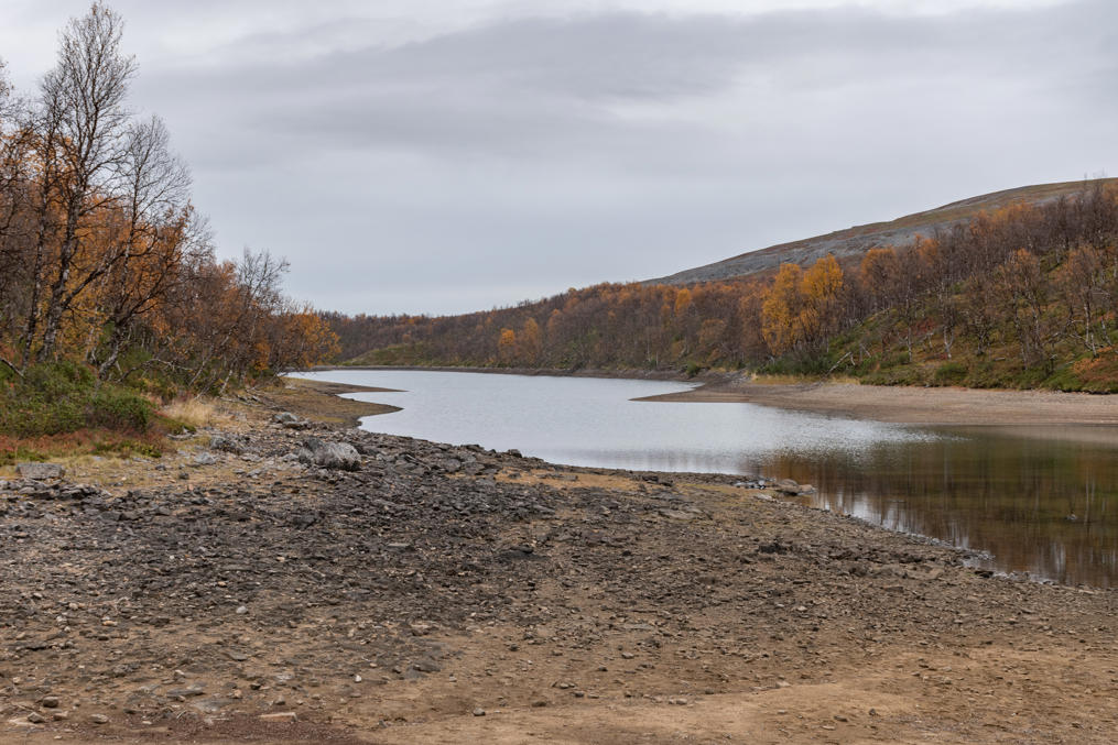 20. В 3 км за Руктаяври — озеро Геаввогеашлатту (Geavvogeašláttu). Это одно из нескольких мест, где раньше тоже были палаточные стоянки, но несколько лет назад их закрыли за малоиспользуемостью, ради экономии (надо же туалеты обслуживать, дрова подвозить и в остальном чинить сломавшееся и проч.). На берегу лежало что-то похожее на доски от разобранного навеса-лааву.