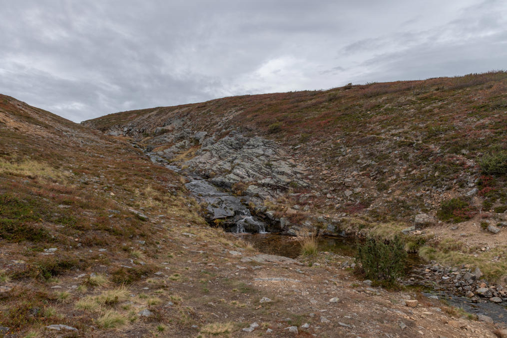 23. С тундр текут в сторону каньона ручьи — обычно просто в глубоких лощинах, а местами и в каменистых ущельях. На этом участке, по крайней мере, спускаться и подниматься в лощины пока не требуется.