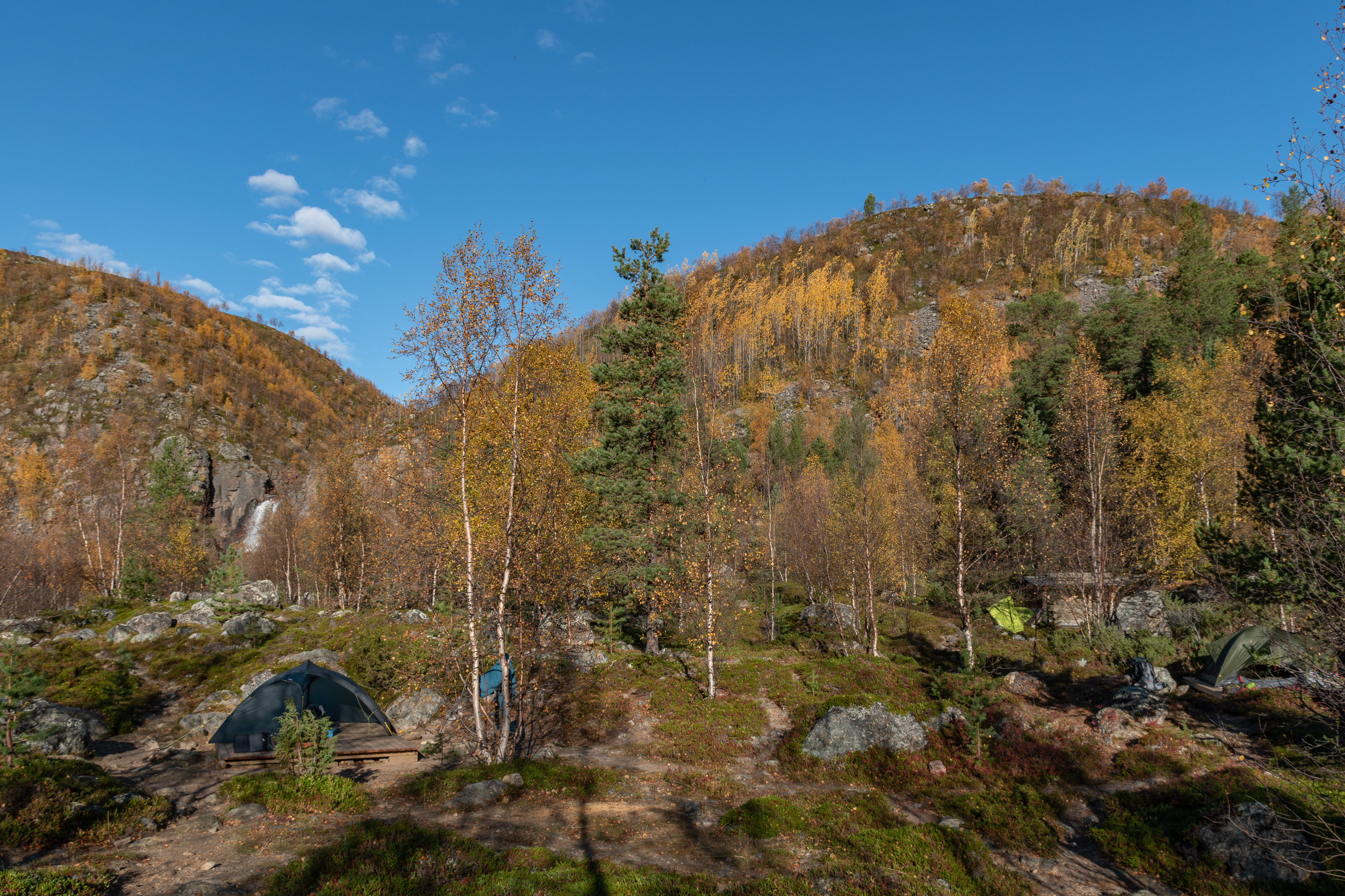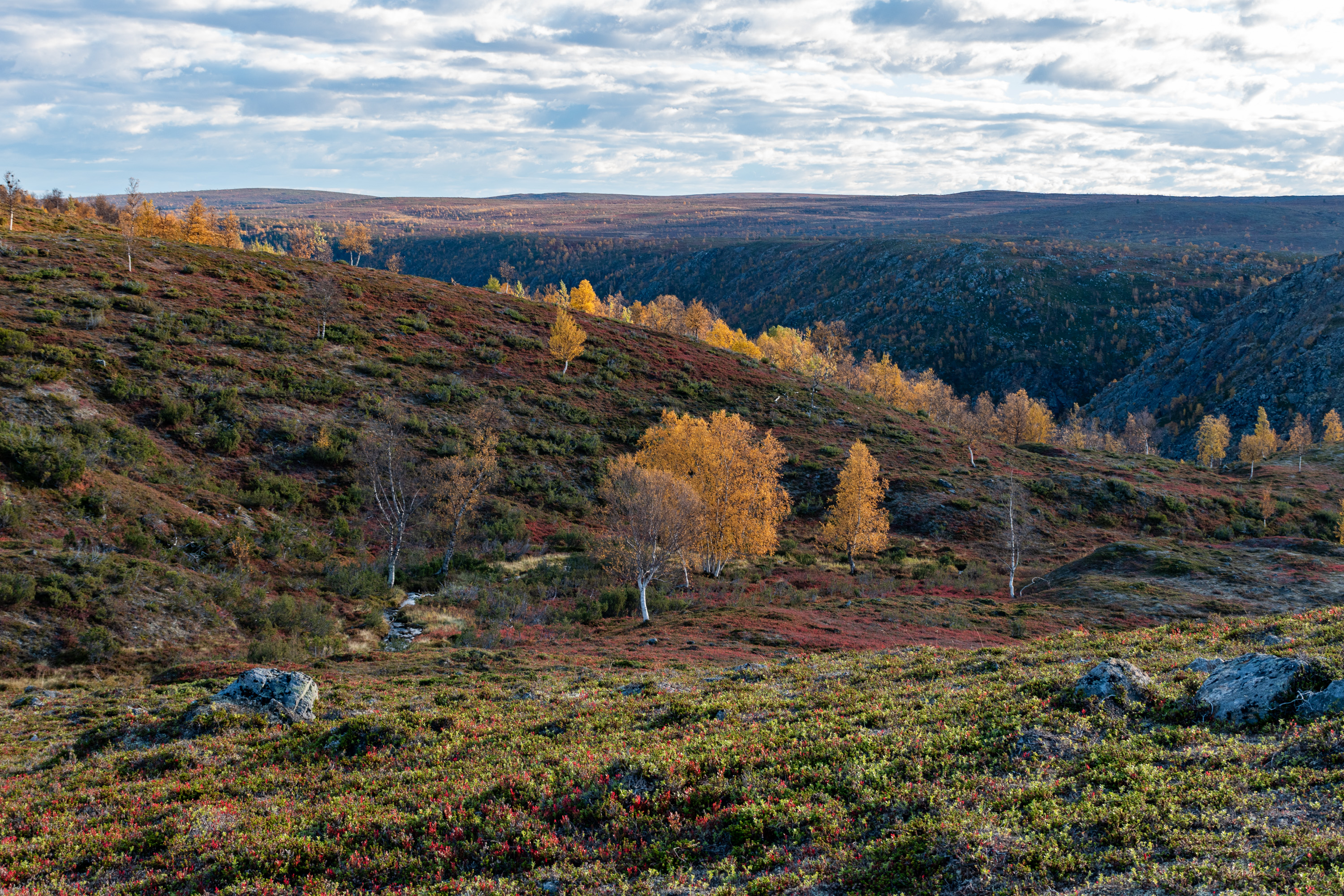 До этого в полноценные походы я не ходил с 2022 года — с самого Кархункиерроса — и сильно опасался, получится ли у меня вообще. Маршрут через заповедник Кево, длиной 63 км, везде описывается как очень сложный, а сойти с него раньше времени возможности нет — как и в походе на Сокости в национальном парке им. Урхо Кекконена, нужно было зайти глубоко в тундры, вдали от цивилизации. Но на этот раз все получилось отлично, план полностью удался, с погодой тоже в основном повезло, и удалось поснимать самых прекрасных краев Лапландии в самое красивое время года, с осенними красками.