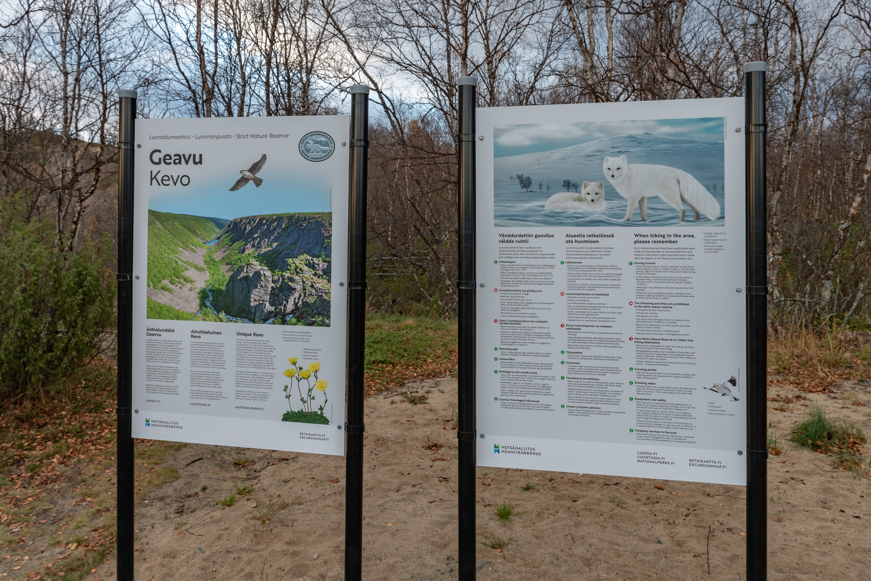 Заповедник (luonnonpuisto, фин. букв. природный парк, в английском переводе strict nature reserve) — самый высокий уровень охраняемой природной территории в Финляндии. Посещение заповедника в норме вообще не разрешается никому. Для некоторых из 19 заповедников страны исключения все же есть — в основном в самых крупных — где можно передвигаться по немногочисленным официальным пешим маршрутам, но все равно правила строже обычных национальных парков — сходить с маршрутов нельзя, нельзя даже собирать ягоды и грибы, в отличие от всей остальной страны. Я показывал ранее заповедники Малла, по дороге к пограничному камню Финляндии-Швеции-Норвегии, и Сомпио, с массивом Наттаненских тундр. Оба они тоже находятся в Лапландии, но все-таки с Кево размером не сравнимы.