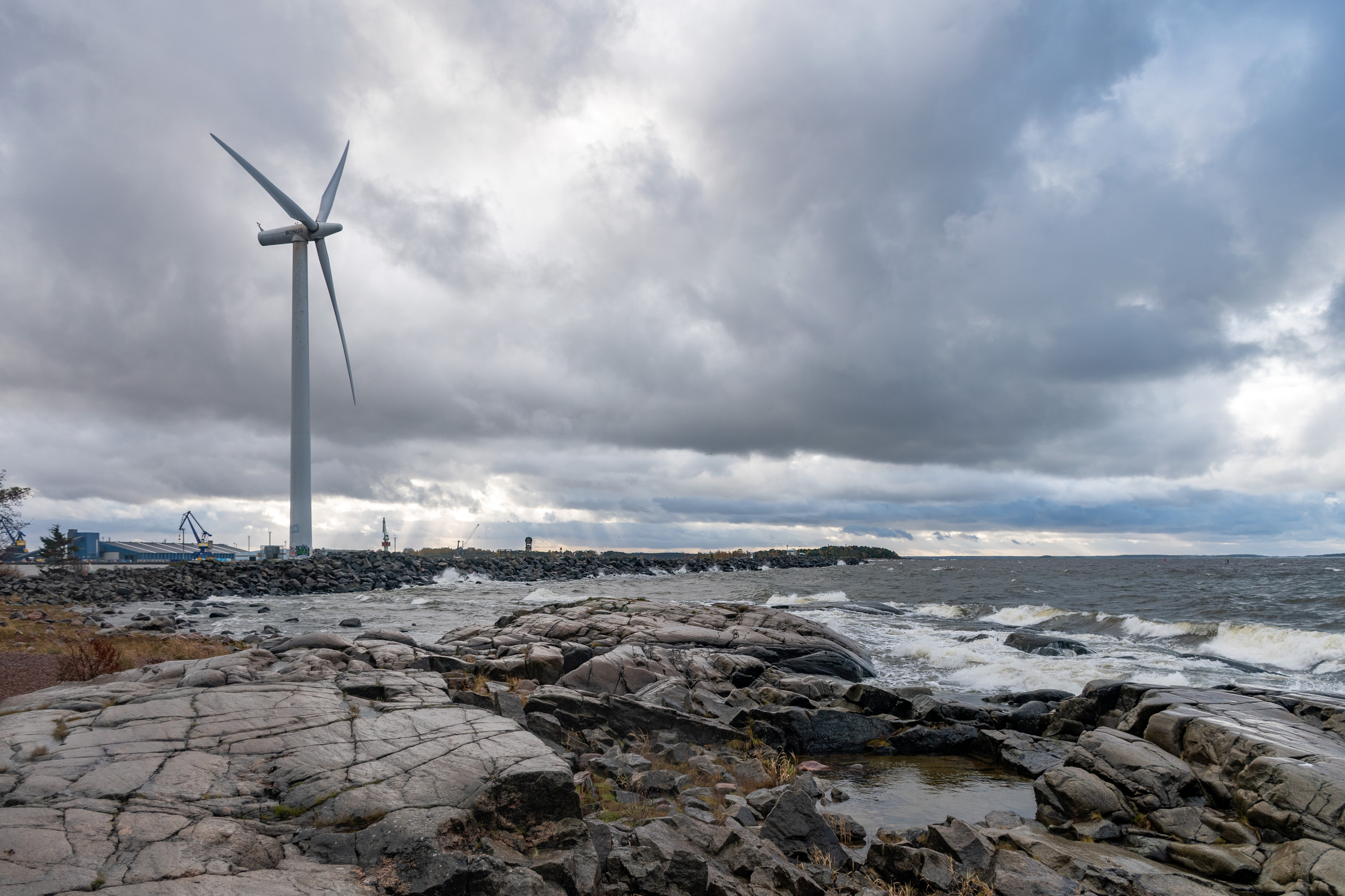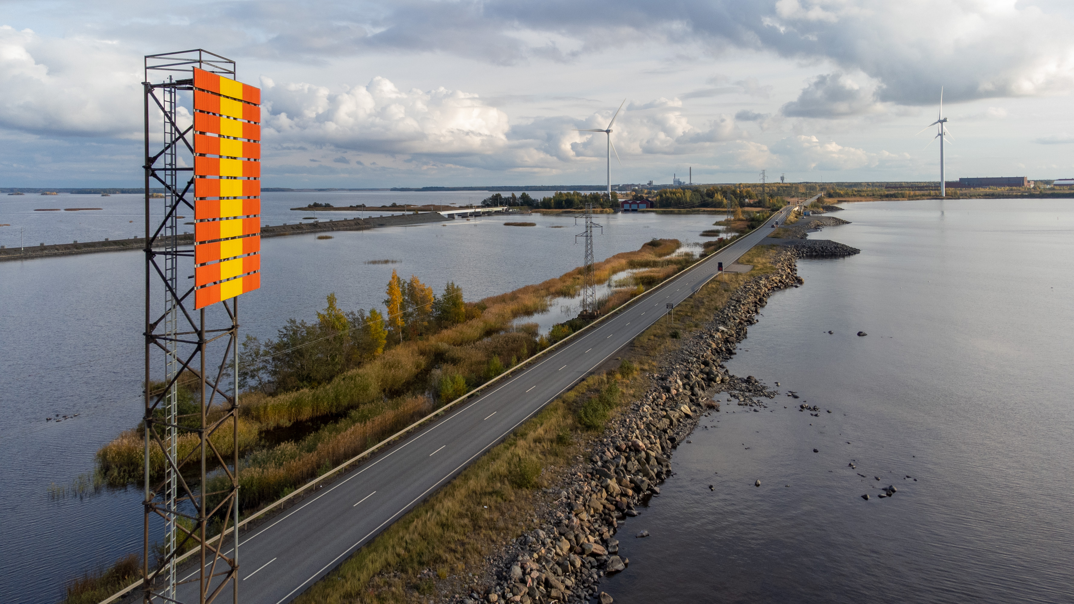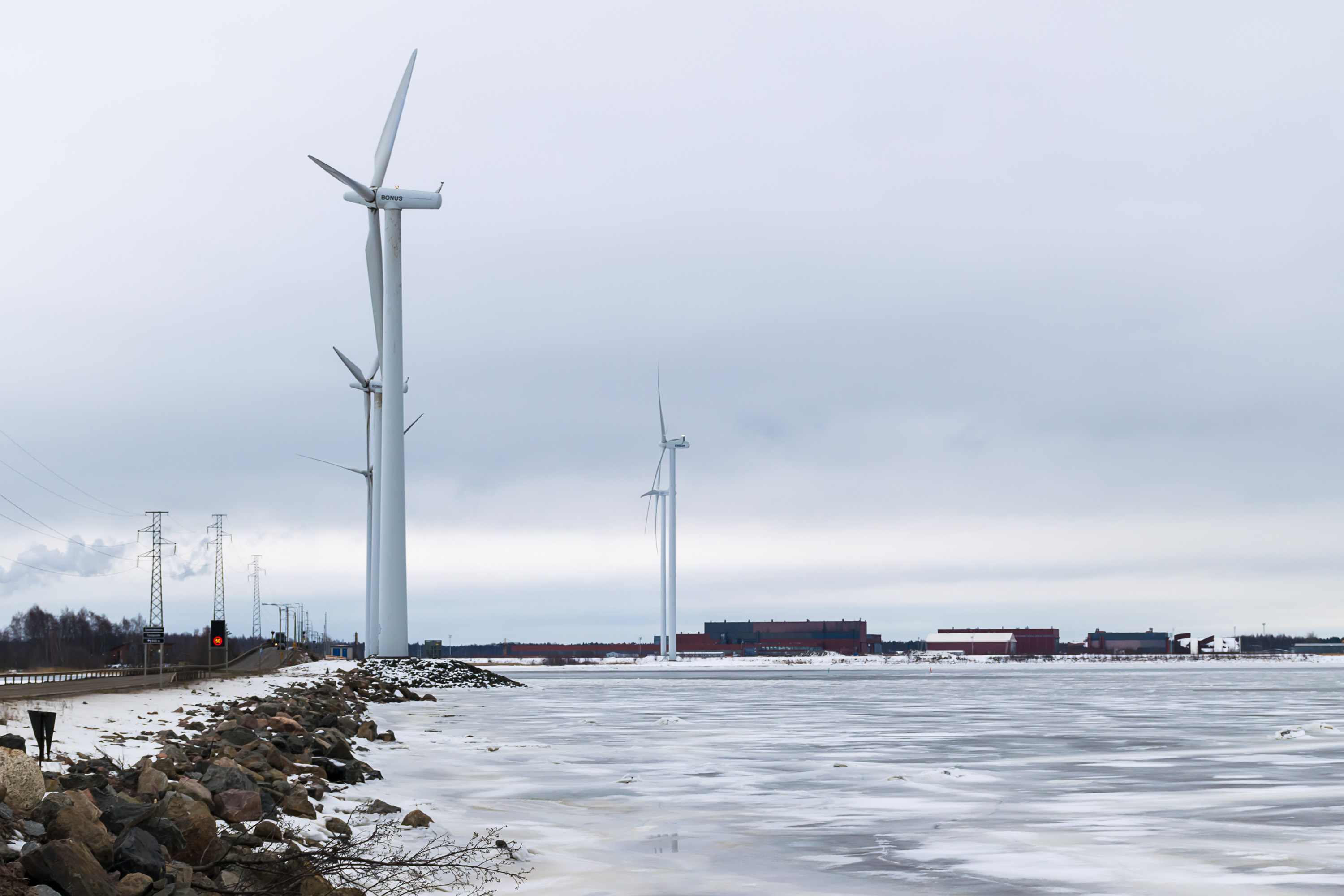 71. Репосаари был, в довершение ко всему остальному, еще и первенцом ветровой энергетики в Финляндии. На этой дамбе еще в 1999 году компания Suomen Hyötytuuli построила четыре ветряка мощностью по мегаватту (те, что на фото слева). Даже на одном из островков вдоль дамбы поставили информационный центр про новомодную технику — он и до сих пор там, только, наверное, закрыт уже. Еще несколько ветряков, часть из них помощнее, поставили вокруг портов Мянтюлуото и Тахколуото. Ветровая электростанция называется Репосаари, хотя по факту ветряки, кроме одного, были со всех сторон вокруг Репосаари, а не на нем самом.