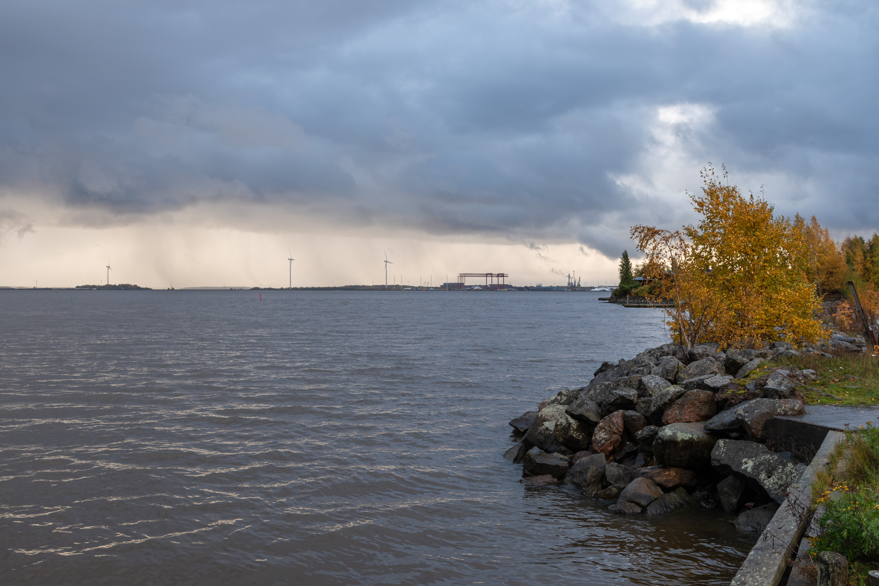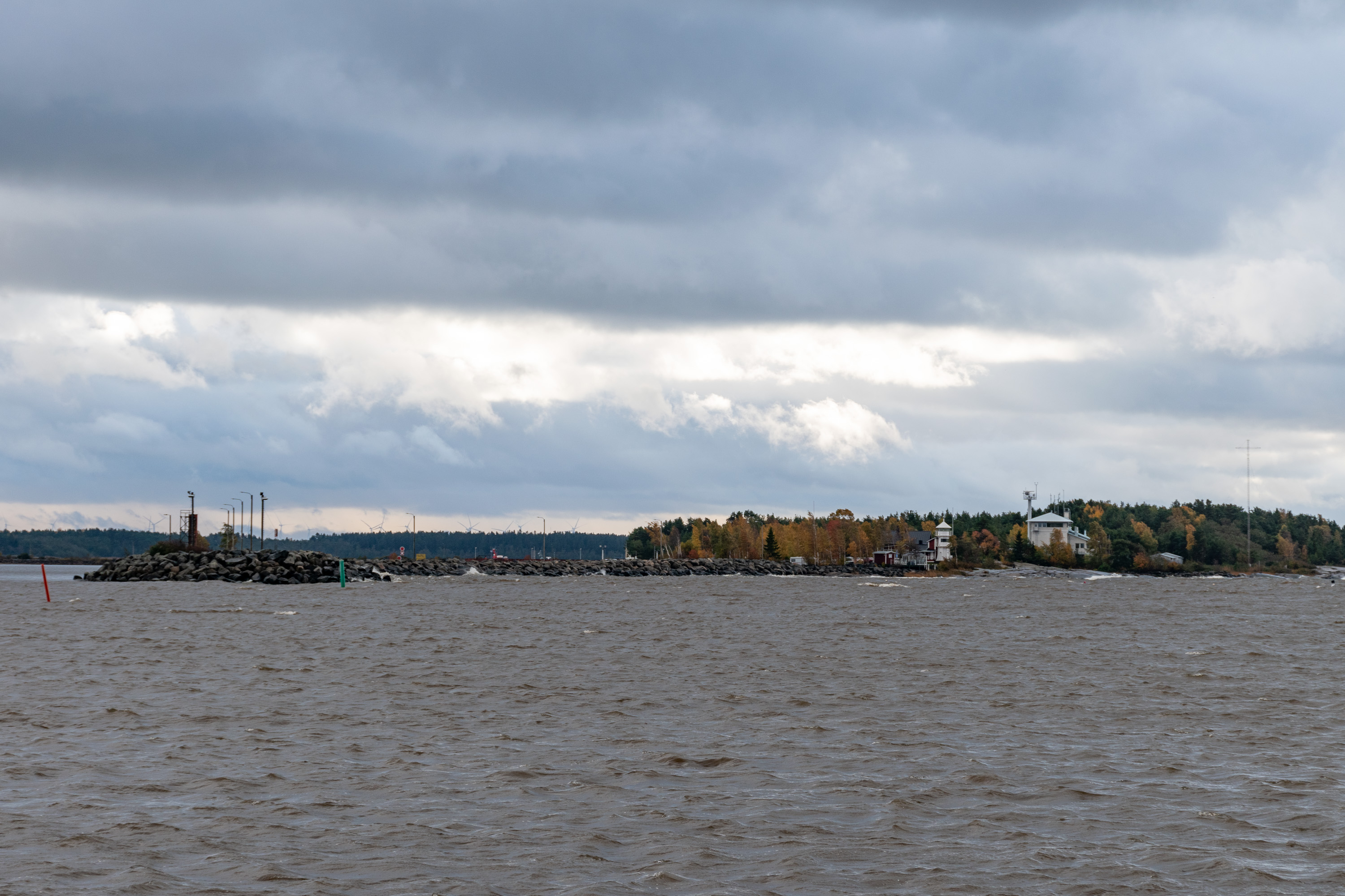 9. А вдалеке — Мянтюлуото, с ветряками и краном верфи, ну, про нее и Мянтюлуото и остальной Мери-Пори (Meri-Pori) — Морской Пори — полосу как промышленных, так и курортных поселков от собственно Пори до Репосаари — поговорим еще отдельно. Это, таким образом, укрытая от моря сторона острова, конечно.