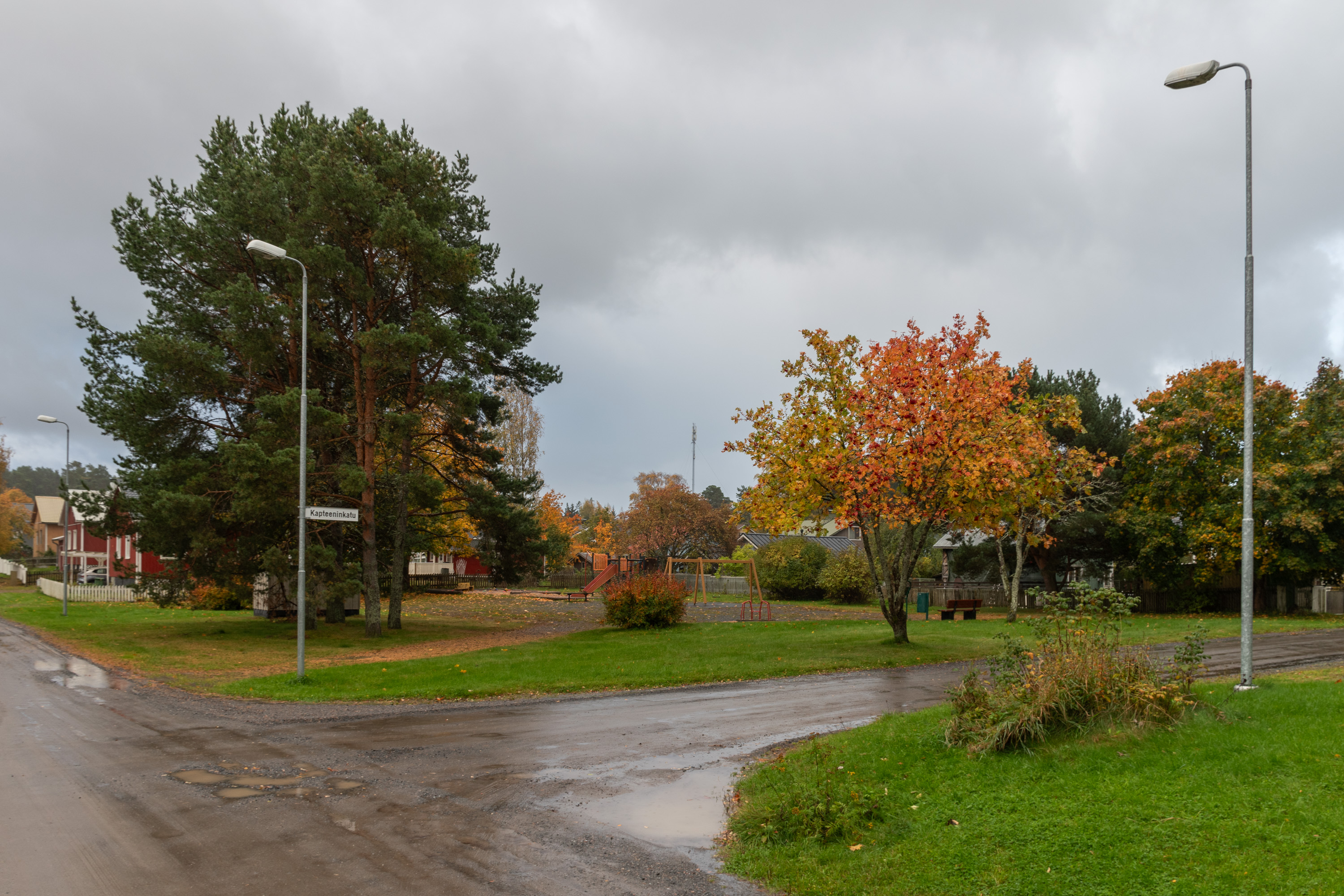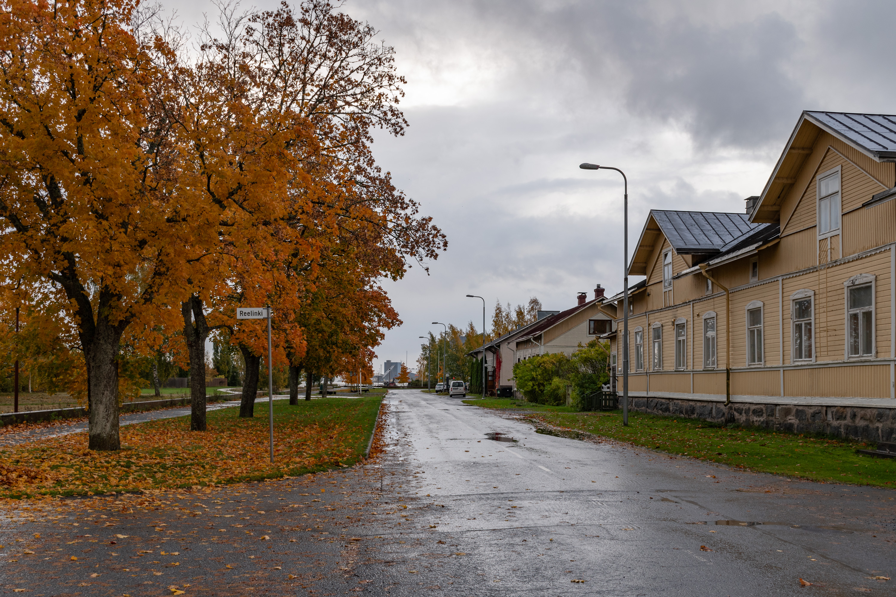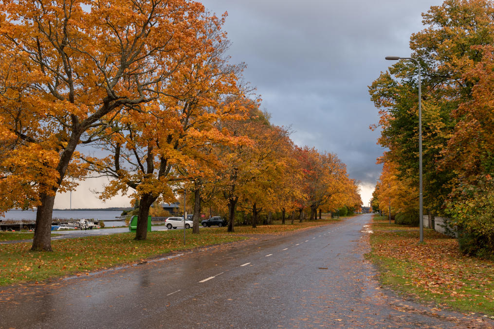 1. Приезжая на Репосаари, будь то на машине или на автобусе, первым делом мы видим набережную с кленовой аллеей — Портовый бульвар (Satamapuisto). Три раза я раньше был на Репосаари, но все было в некрасивые сезоны и/или очень коротко, так что в этот раз теперь для основательной прогулки выбрал самое красивое время осени — лишь несколько недостающих фотографий добавил со старых поездок.